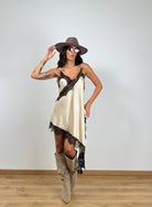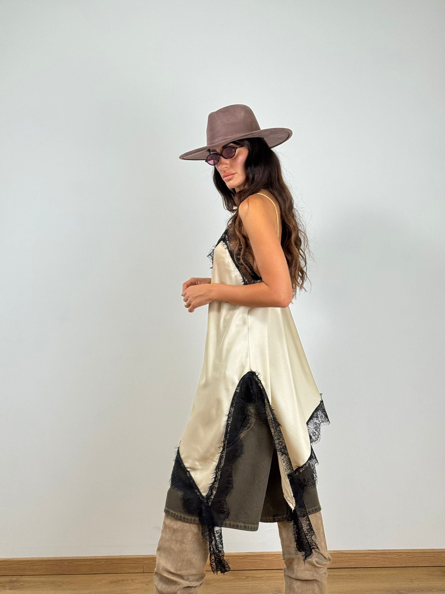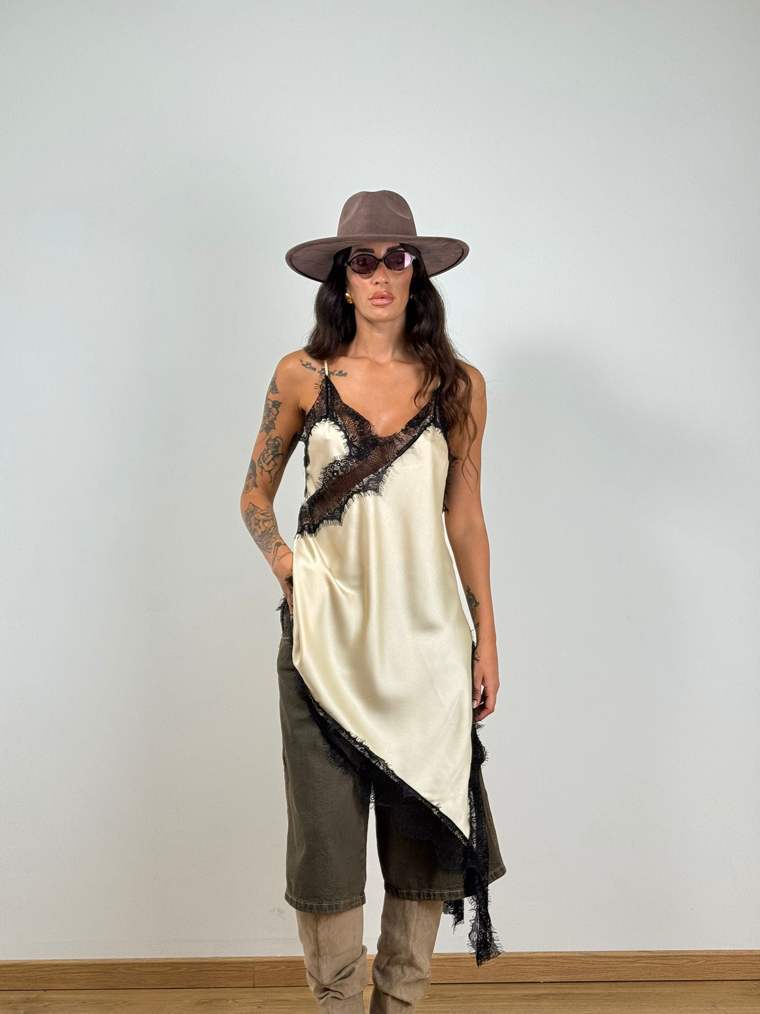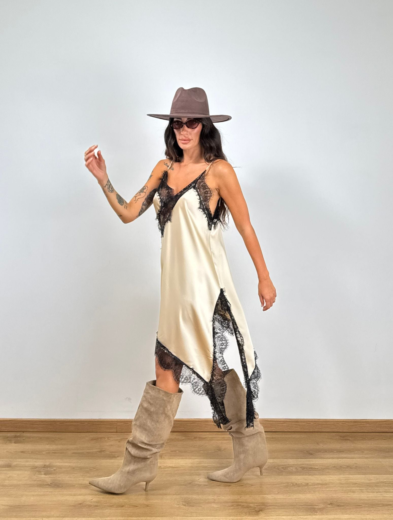 Abito taglia unica in raso con dettagli in pizzo SUPER VIRALE