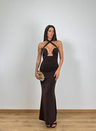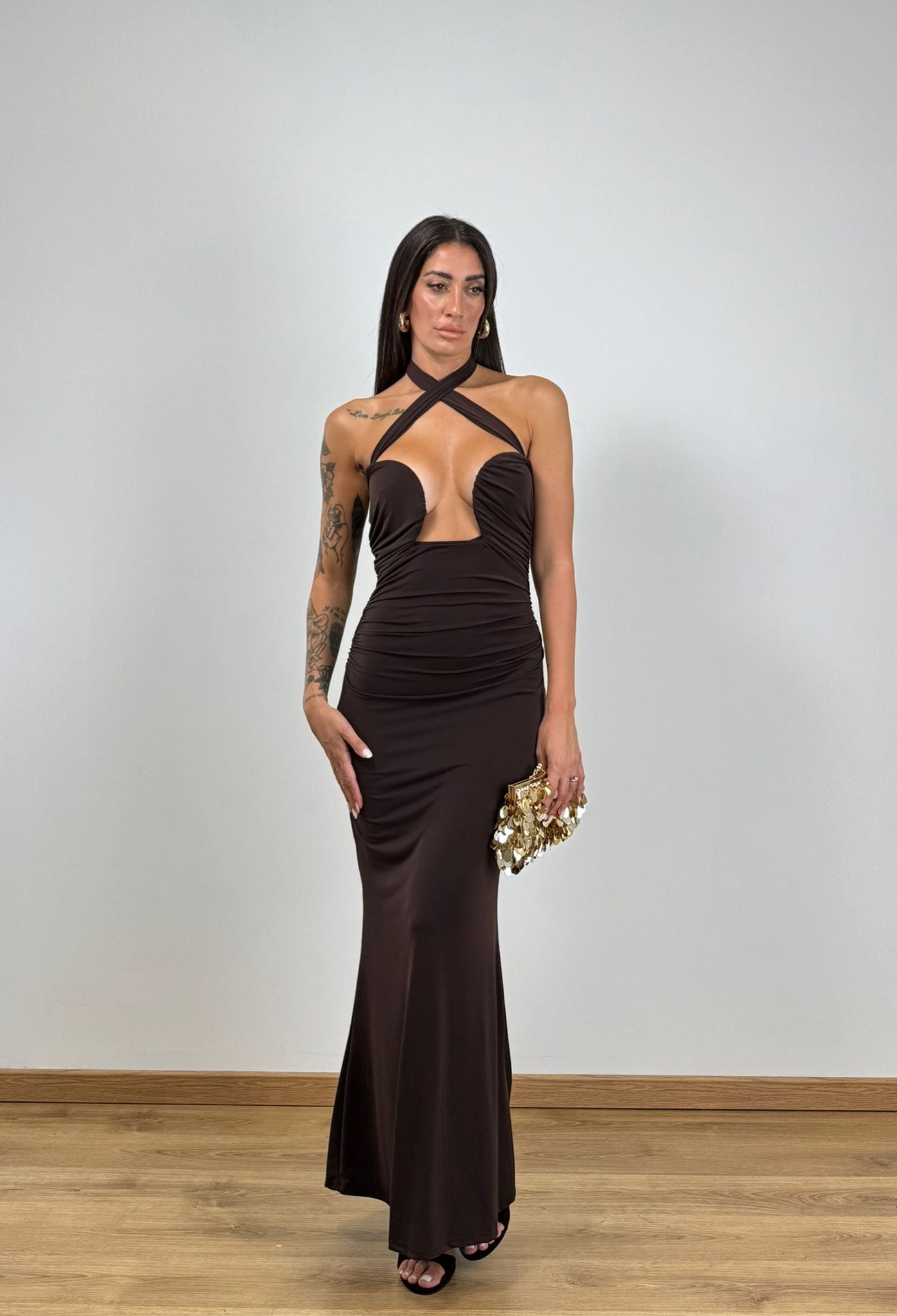 Abito lungo in Jersey elasticizzato con scollo a cuore con ferretto taglia unica