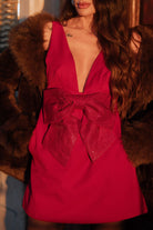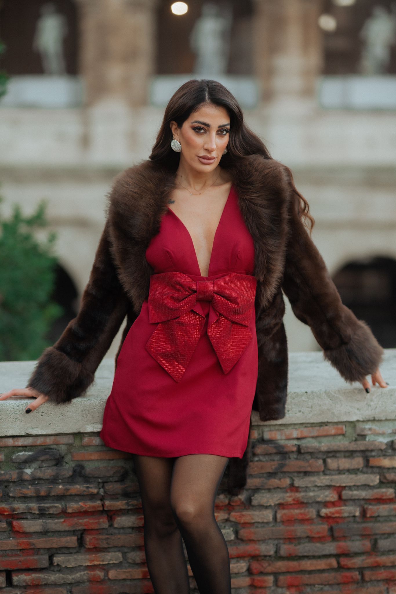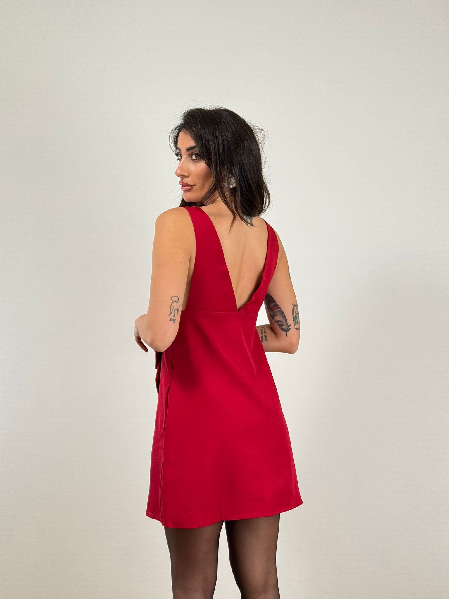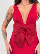 Abito rosso con mega fiocco sul davanti con scollo profondo