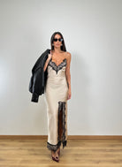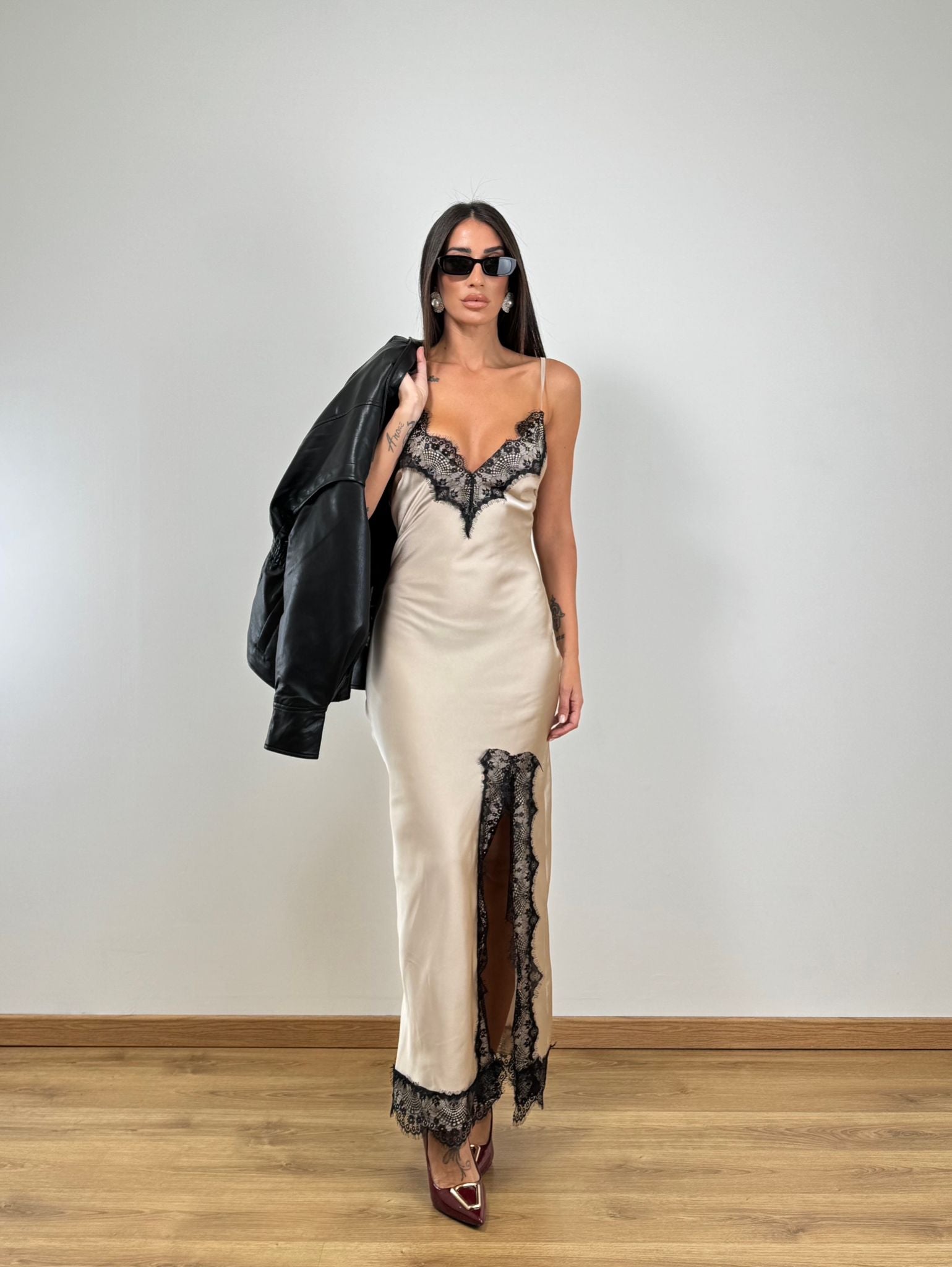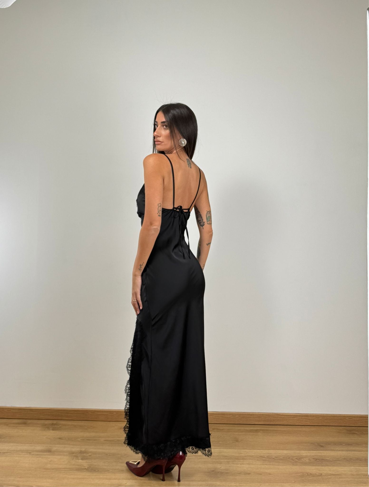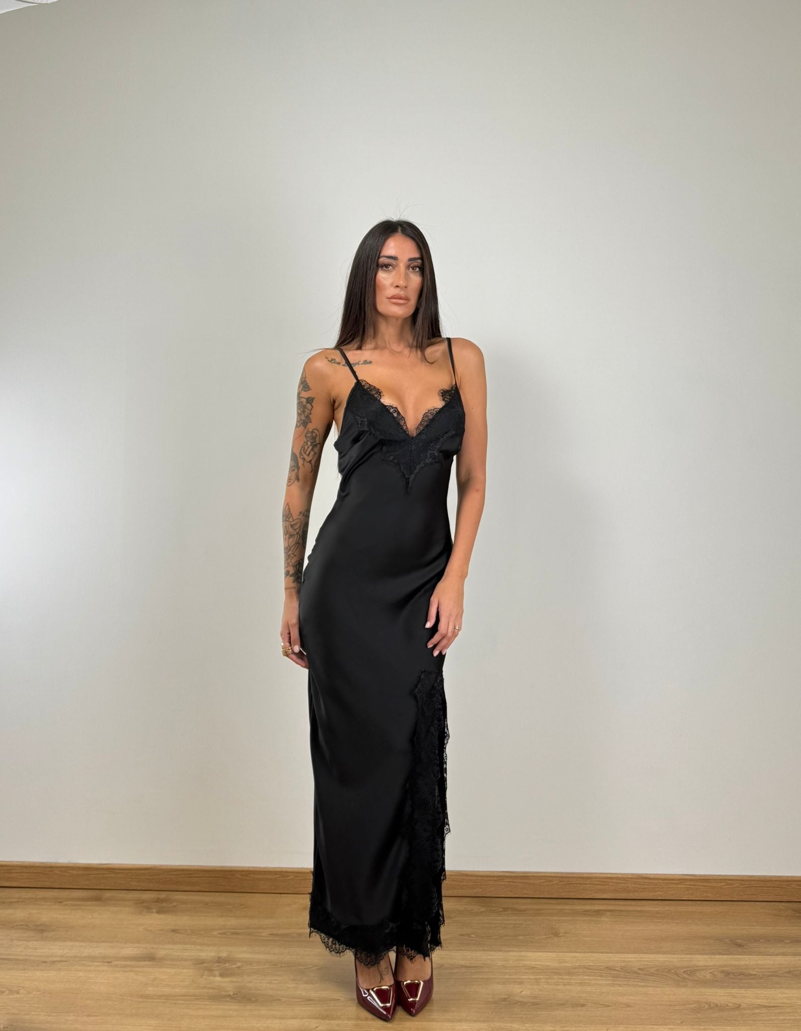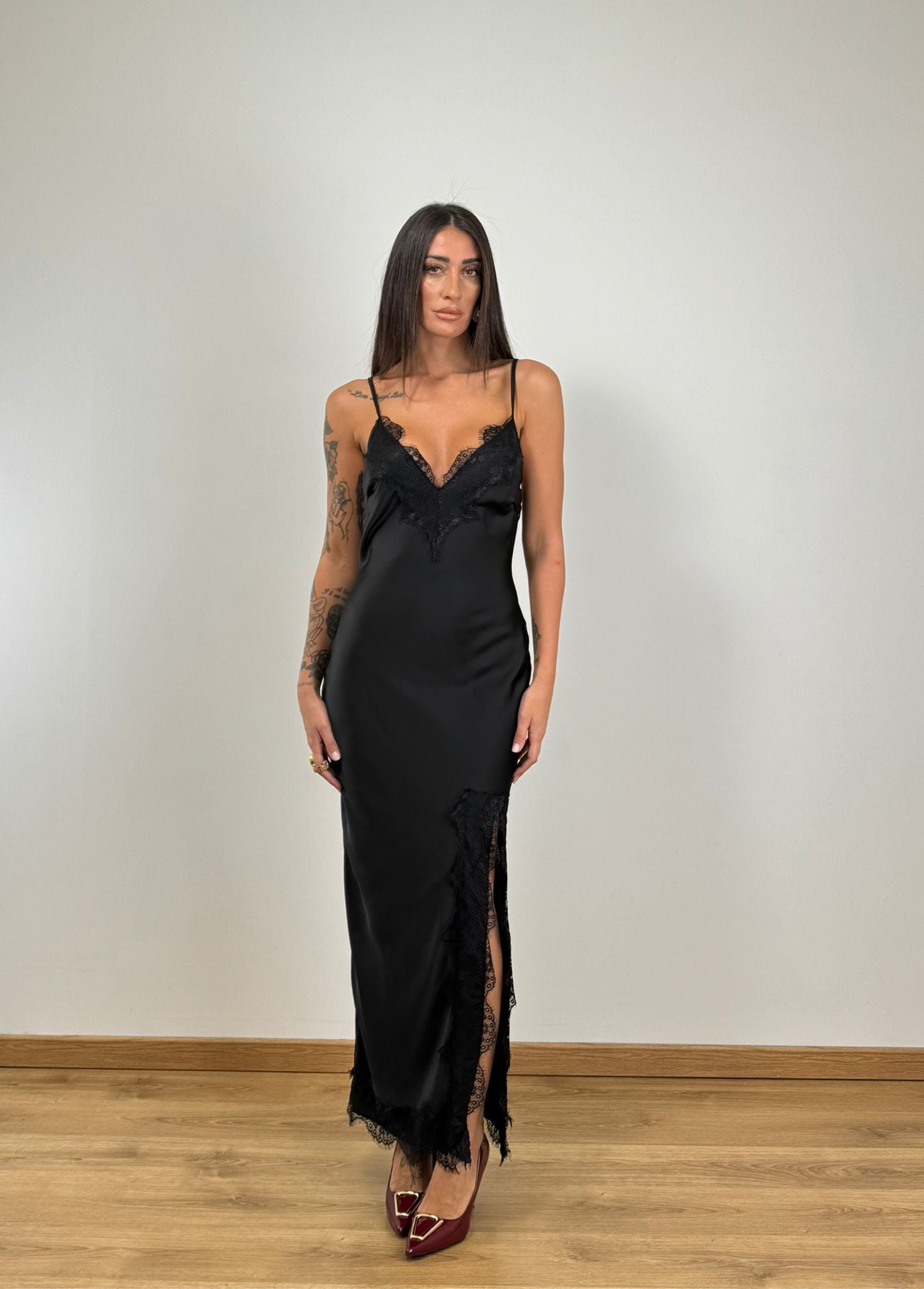 Abito sottana effetto seta con inserti in pizzo taglia unica