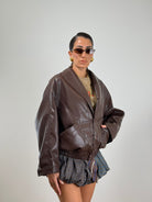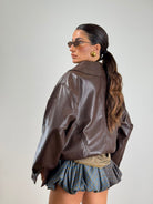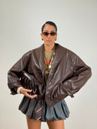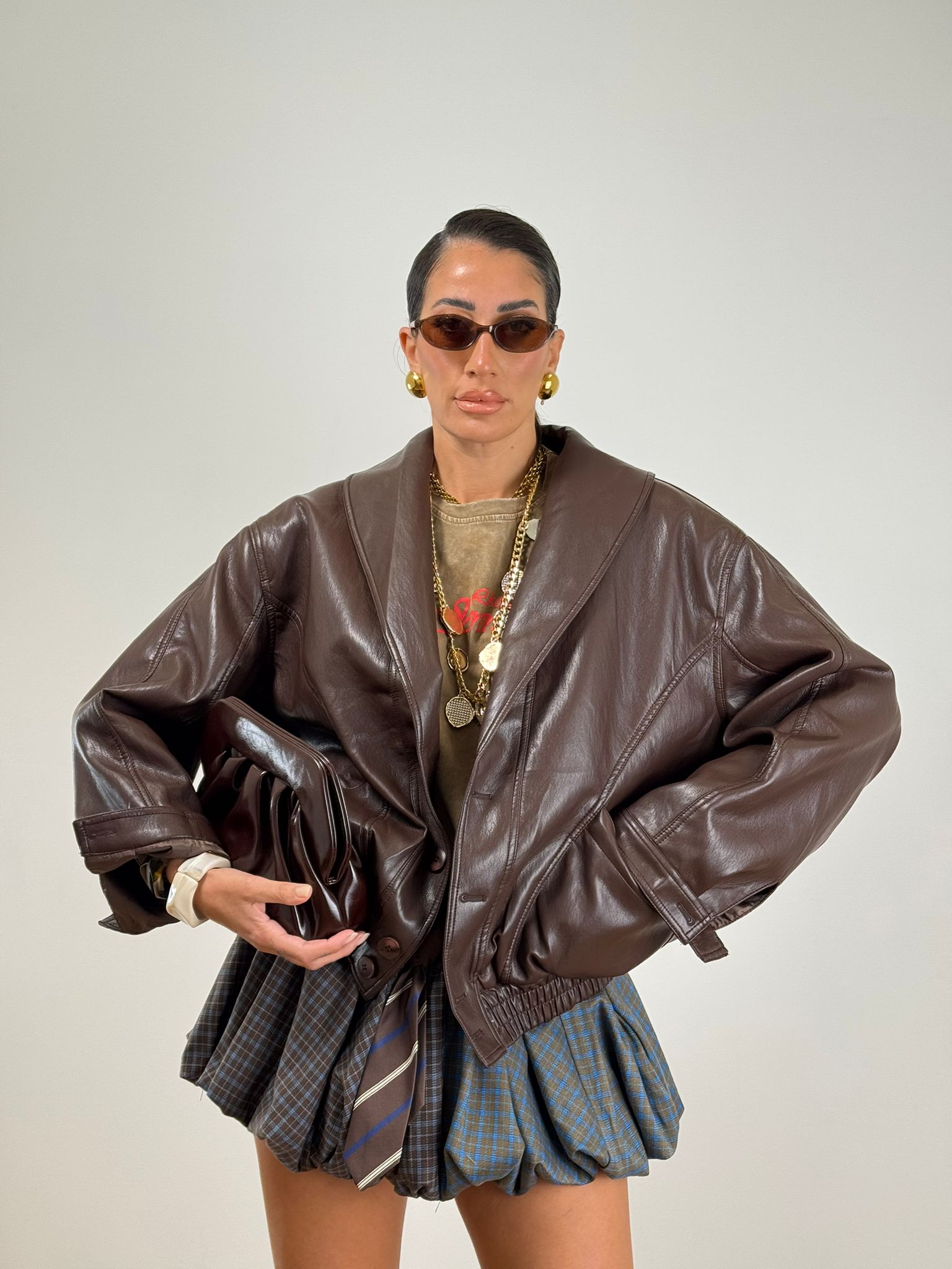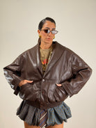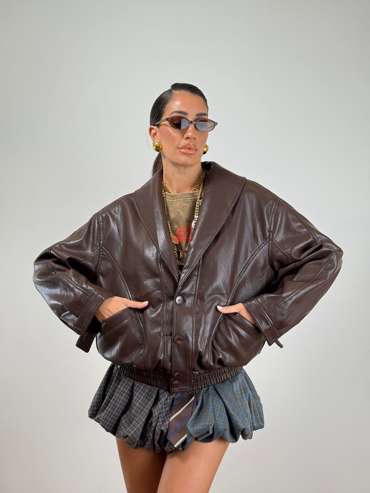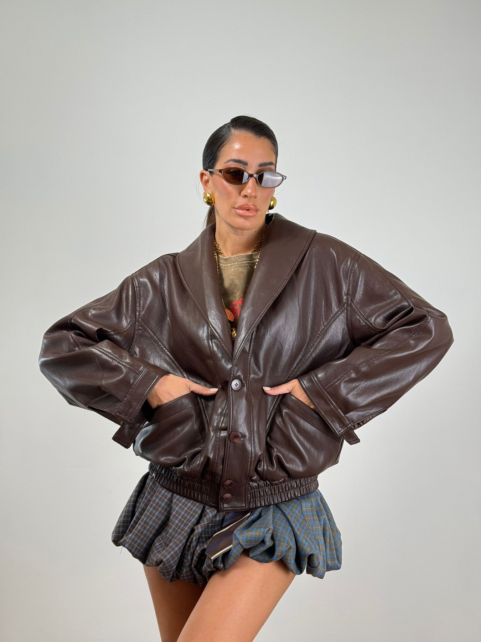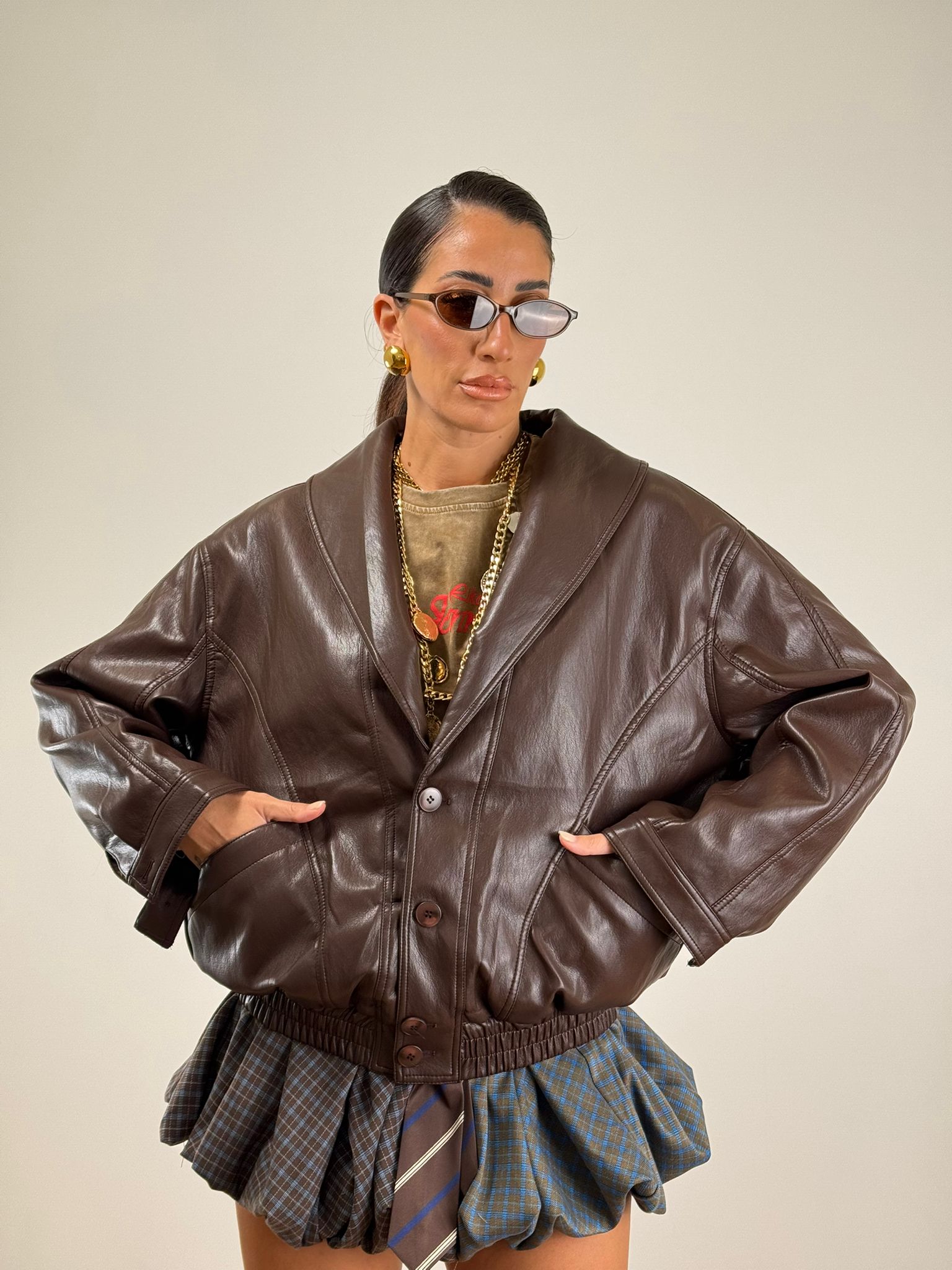 Bomber ecopelle morbido foderato con rever bottoni sul davanti e cannole sul fondo a taglie
