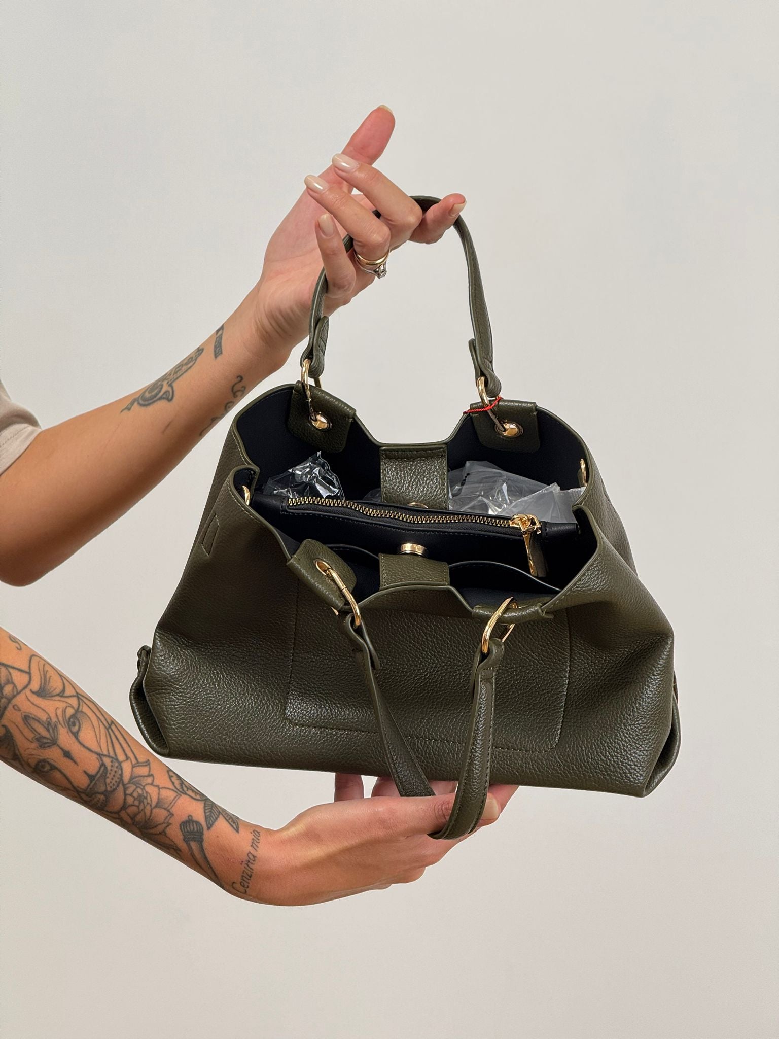 Borsa ecopelle con Manici e tracolla , doppio scompartimento