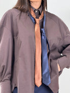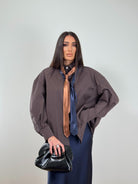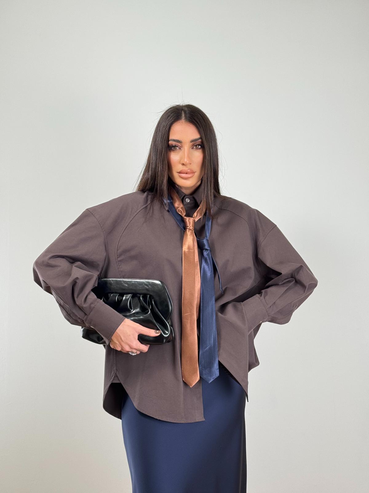 Camicia oversize con doppia cravatta inclusa colore marrone , sul cartellino la classificano grigio scuro ma è CHIARAMENTE MARRONE