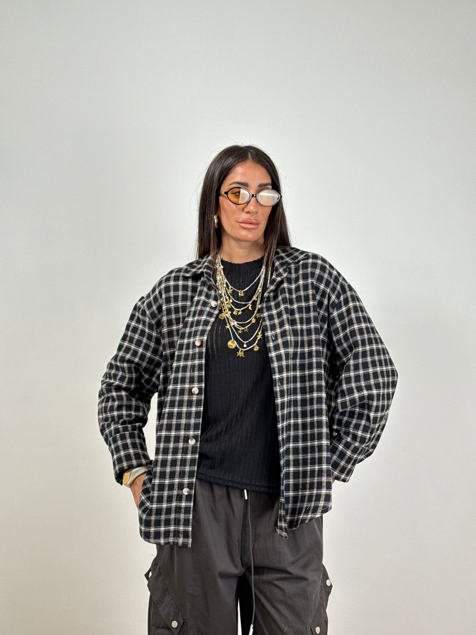 Camicia quadri caldo cotone effetto flanella taglia unica oversize