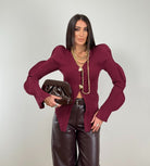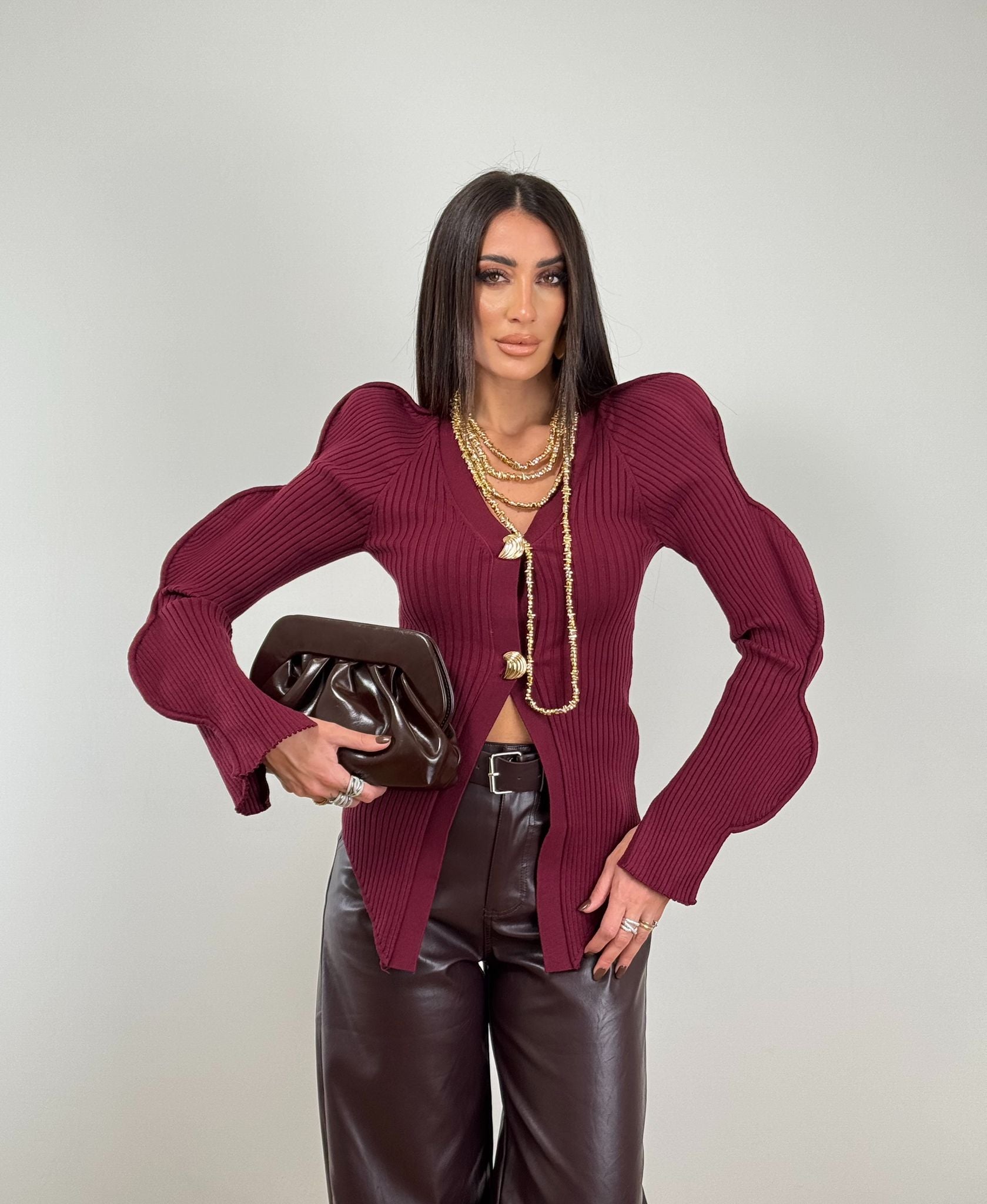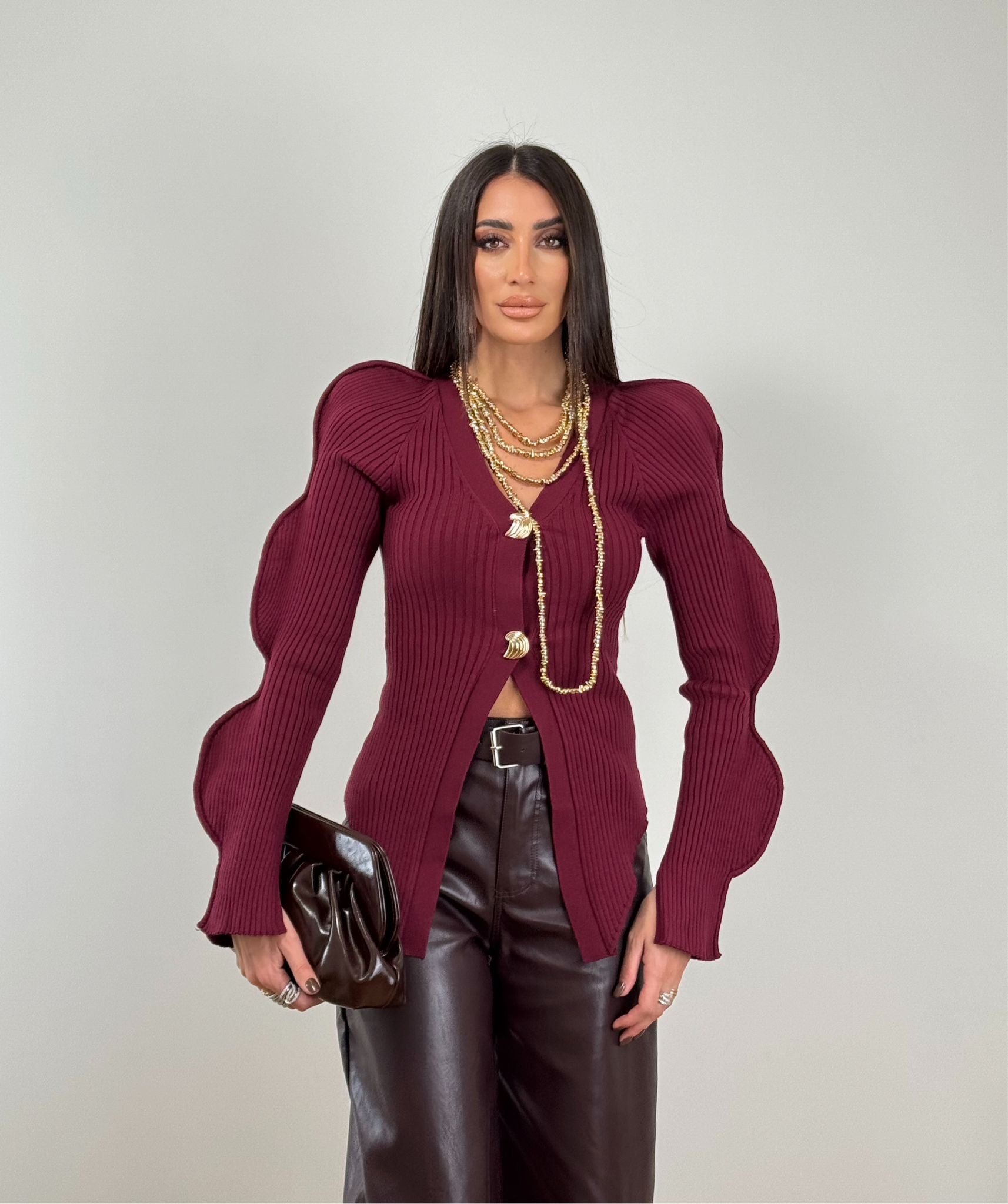 Cardigan a coste elasticizzato taglia unica bottoni oro con punte