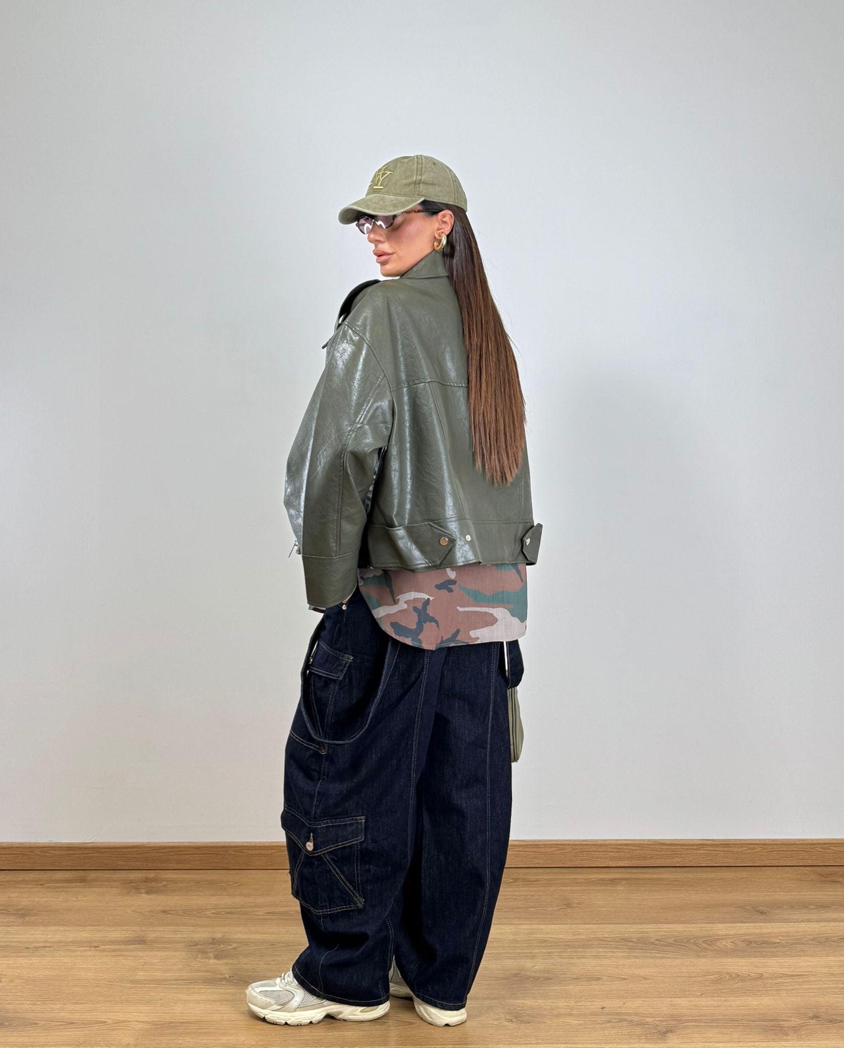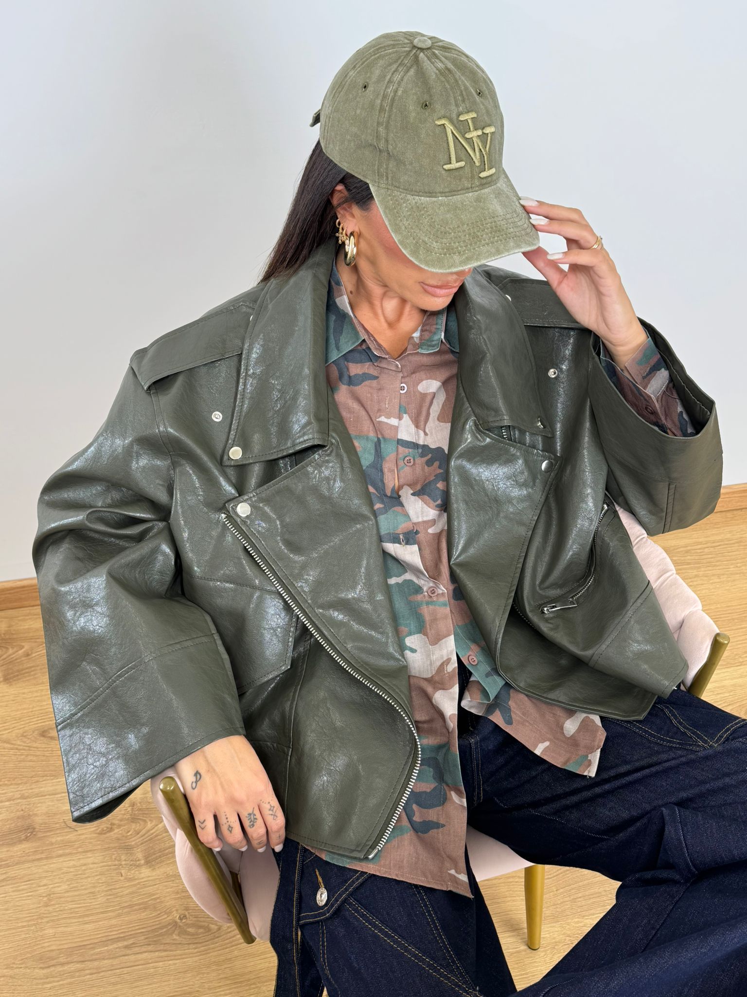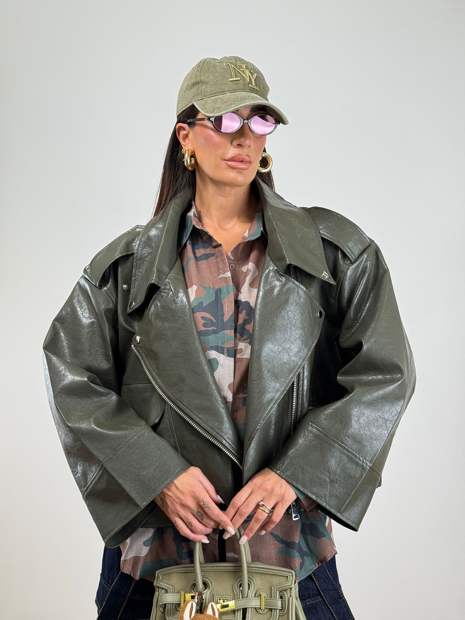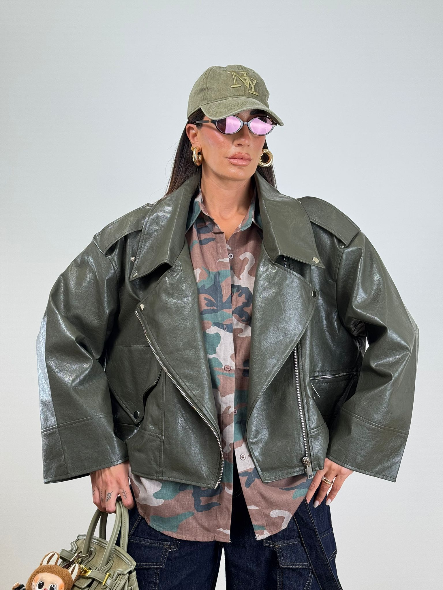 Chiodo ECOPELLE BIG OVERSIZE CON MANICA DRITTA, top quality effetto martellato foderato, taglia unica