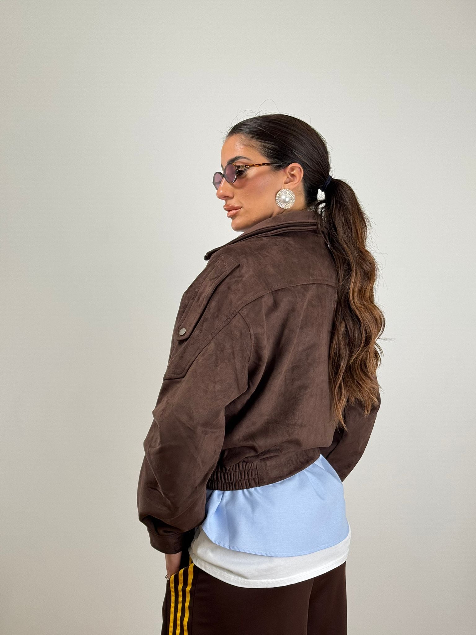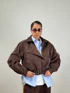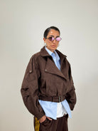 Chiodo scamosciato a taglie maniche larghe con cintura