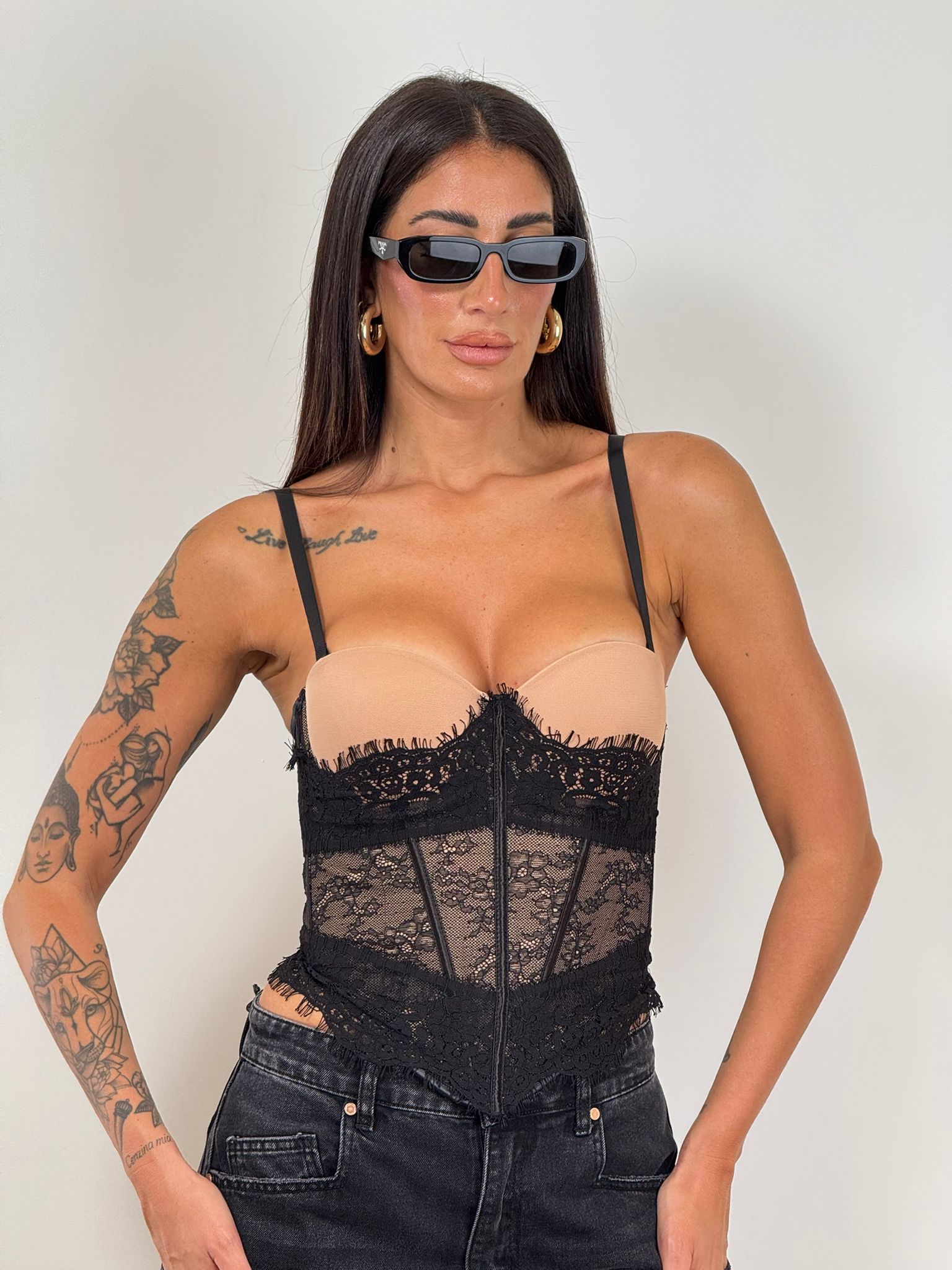Corpetto in pizzo stecche rigide coppe preformate push up nude