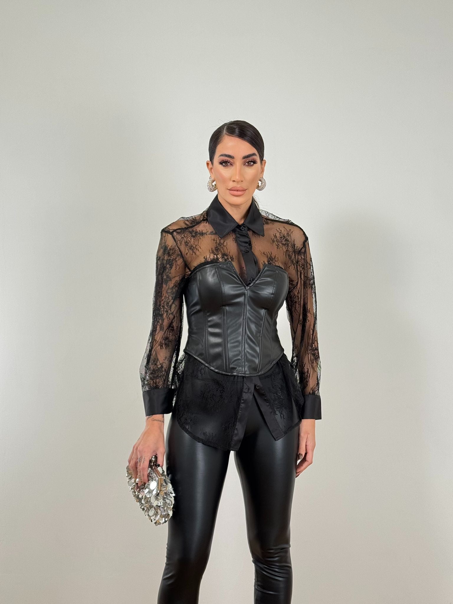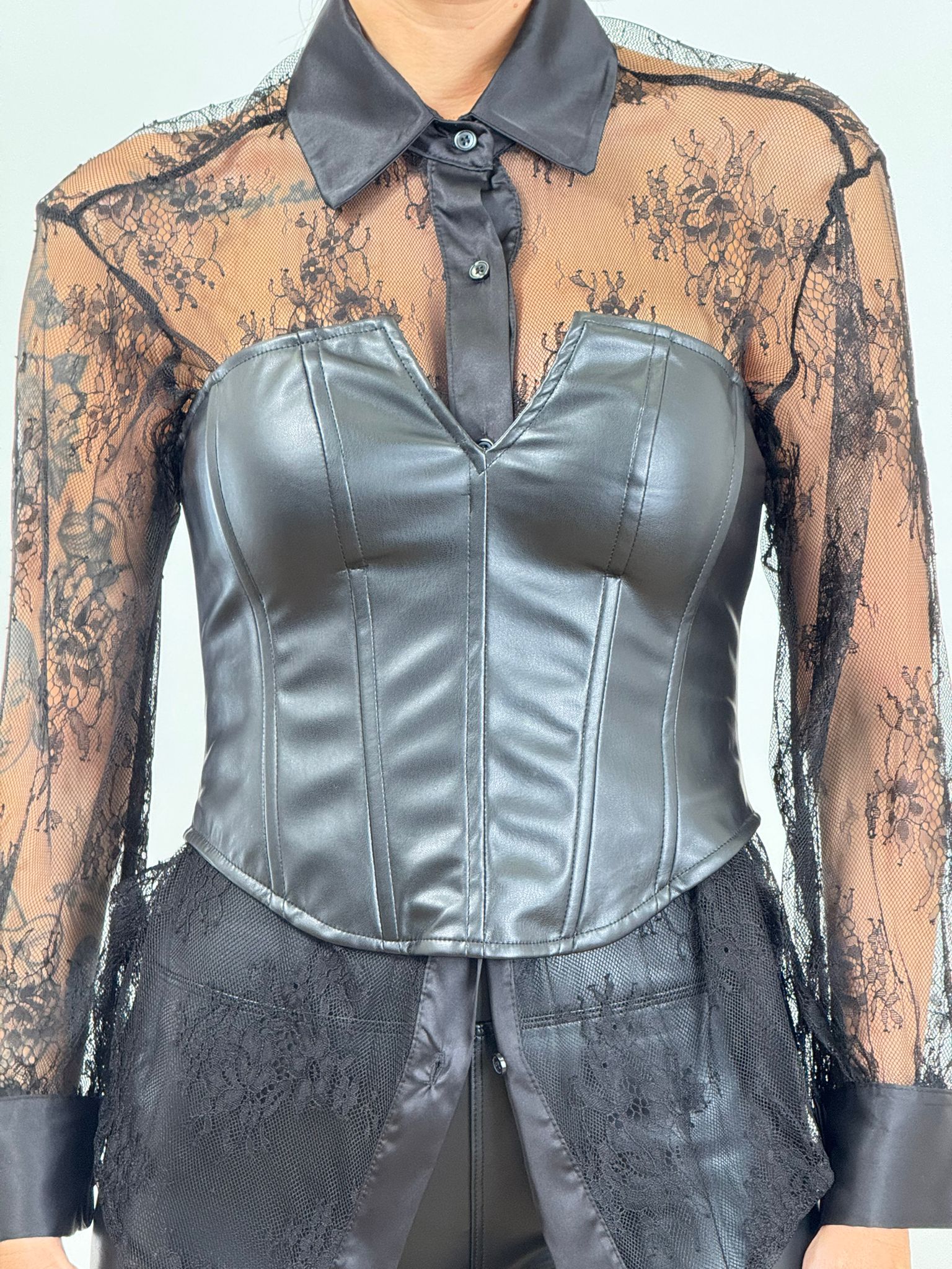 Corsetto in ecopelle a taglie con allacciatura sul retro , coppe preformate e stecche rigide