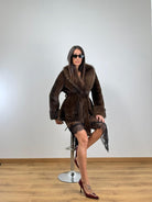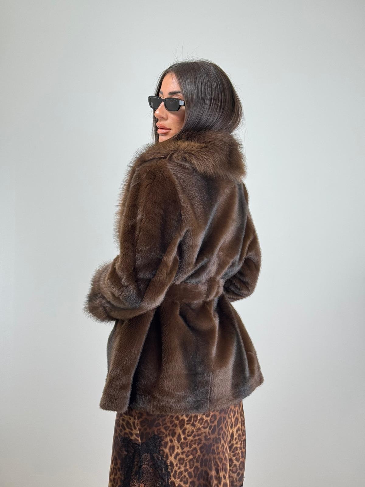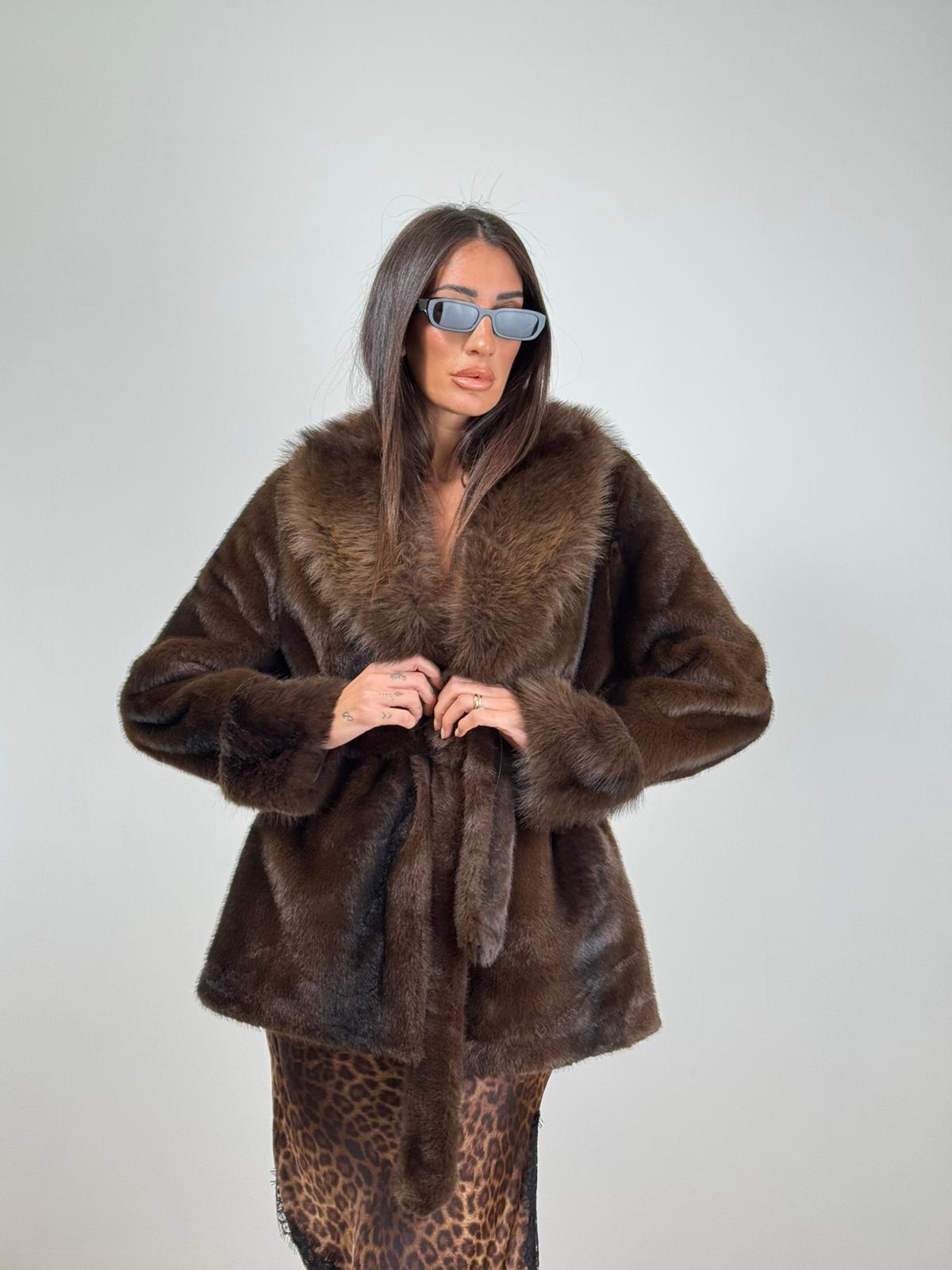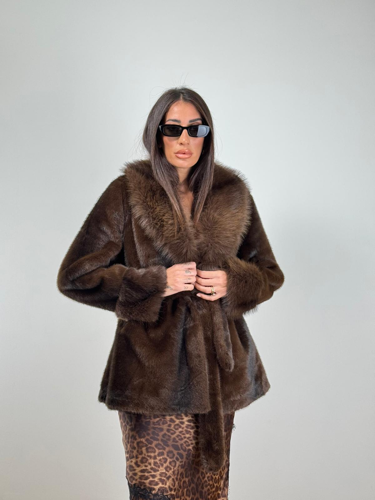Eco pelliccia visione marrone top quality morbidissima fatta benissimo con cintura , interno un montone taglia unica
