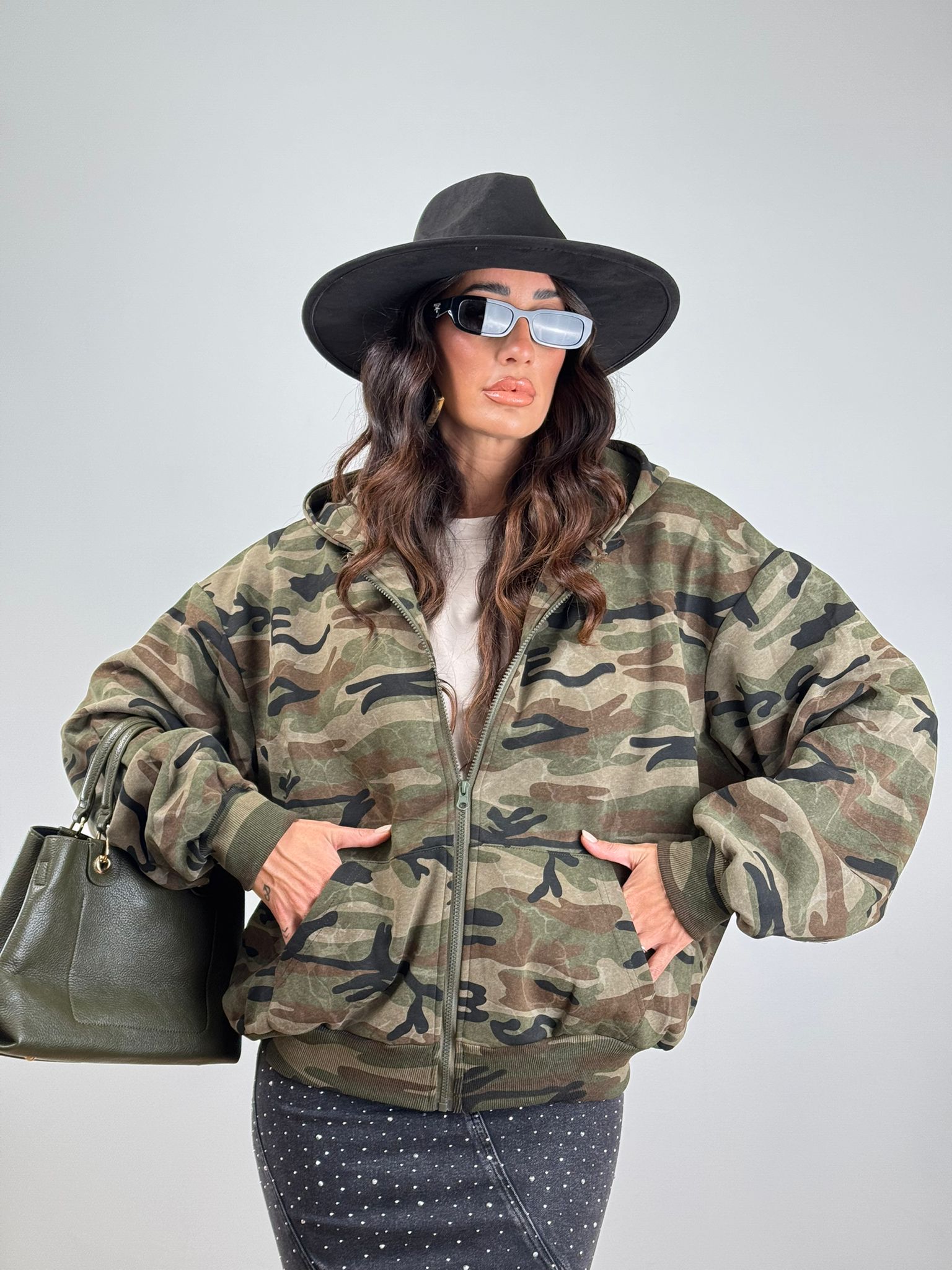 Felpa militare oversize con cappuccio veste fino 46/48, top quality taglia unica