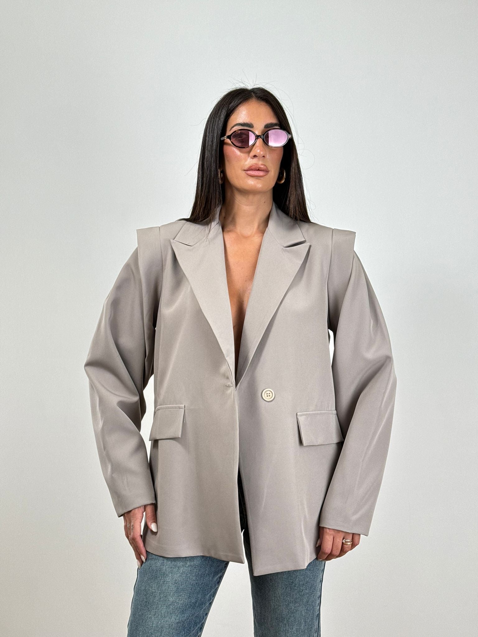 Giacca oversize con cintura taglia unica , spallina a punta, SPLILLETTE NON INCLUSE