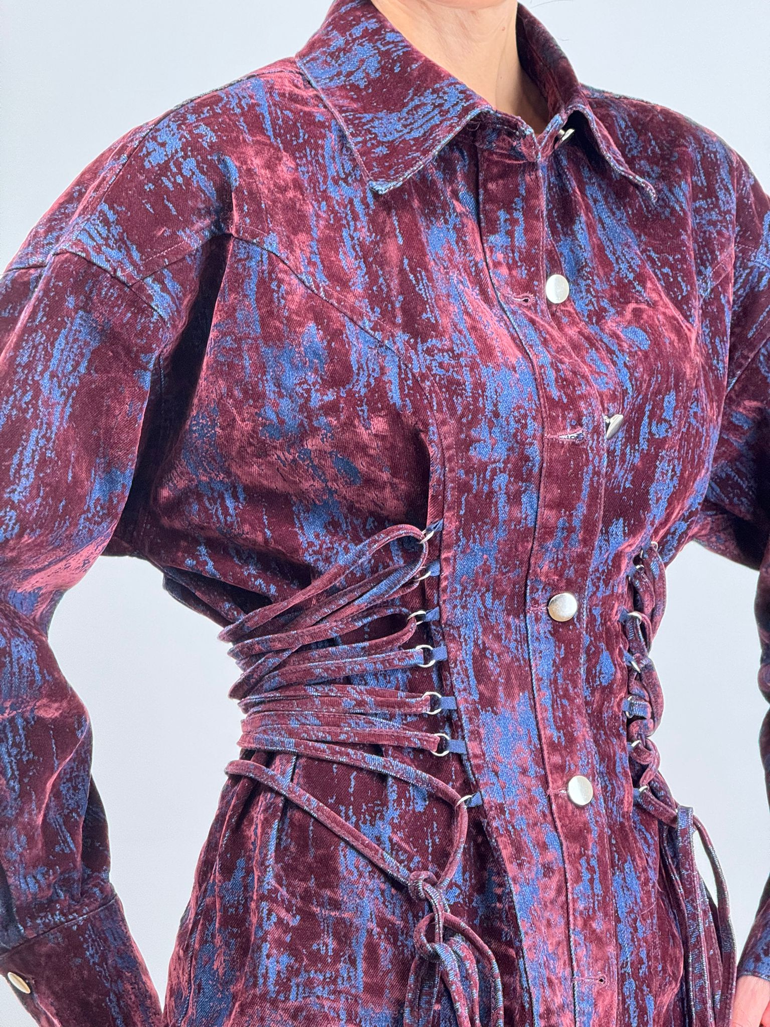 Giacca in denim all interno, mentre all esterno è tipo velluto rasato , ottimo fit un capo unico , taglia unica