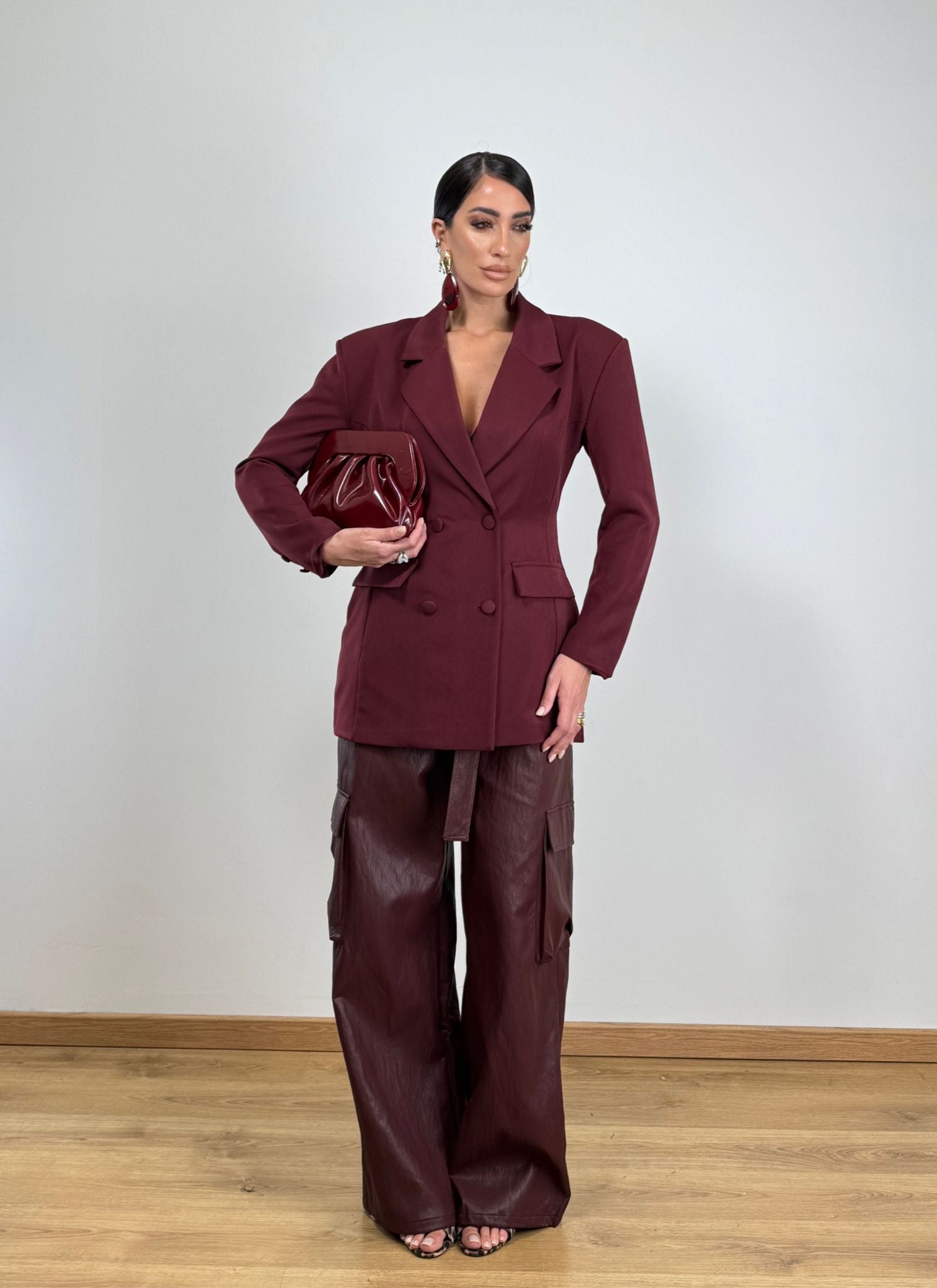 Giacca lunghetta avvitata doppio petto taglia unica con cinturina sul retro