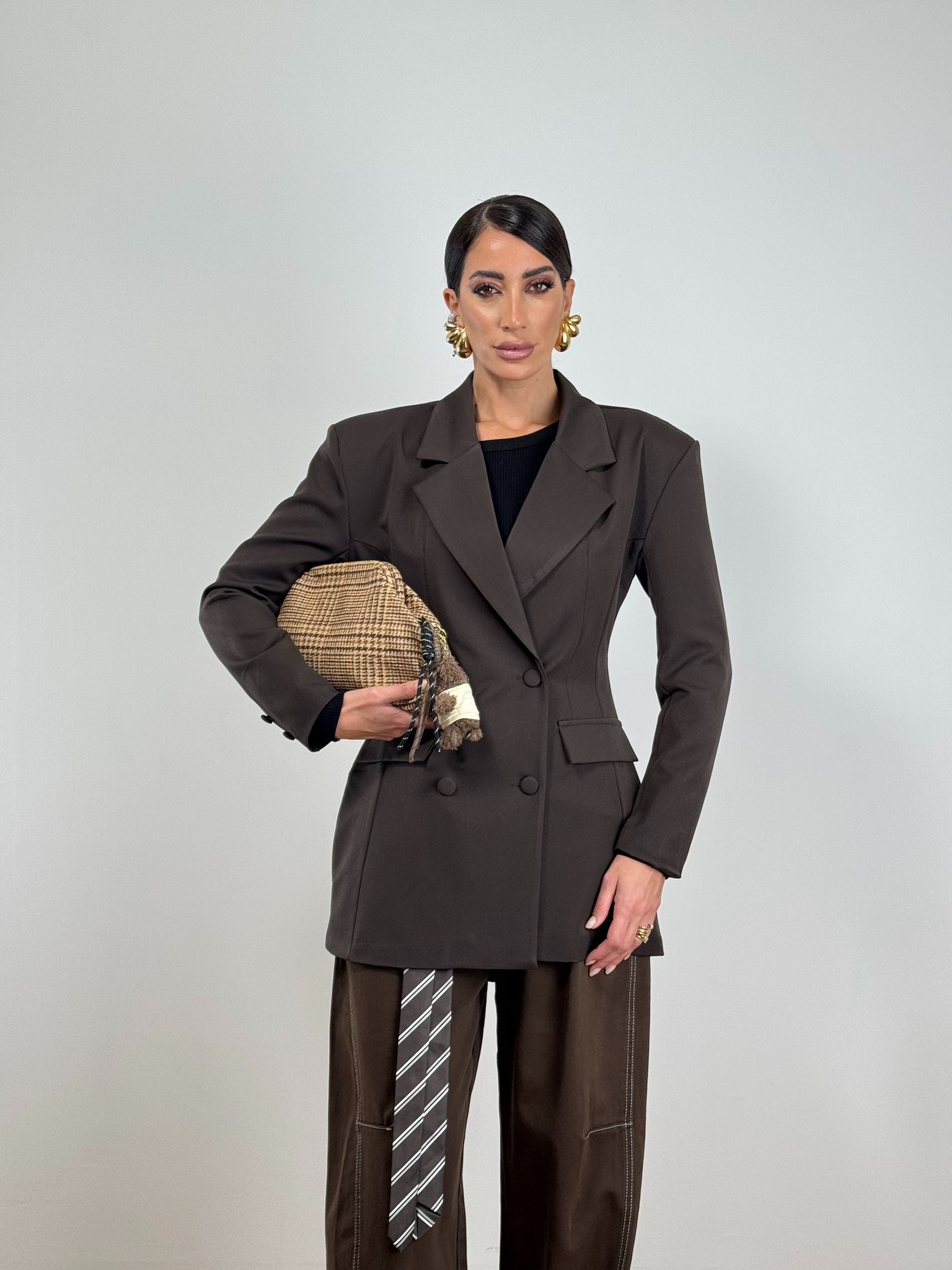 Giacca lunghetta avvitata doppio petto taglia unica con cinturina sul retro
