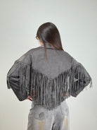 Giubbino croped scamosciato con frange taglia unica