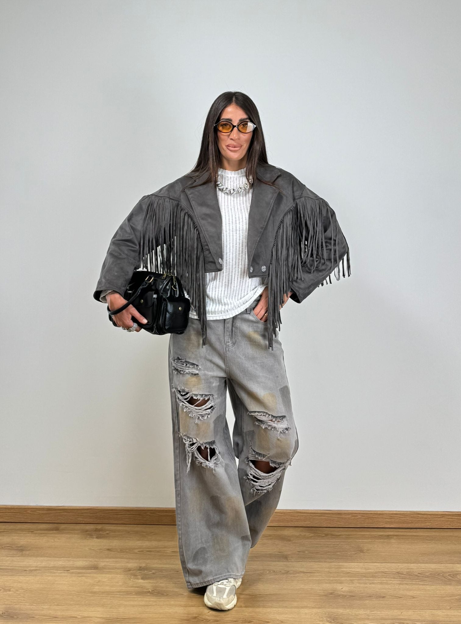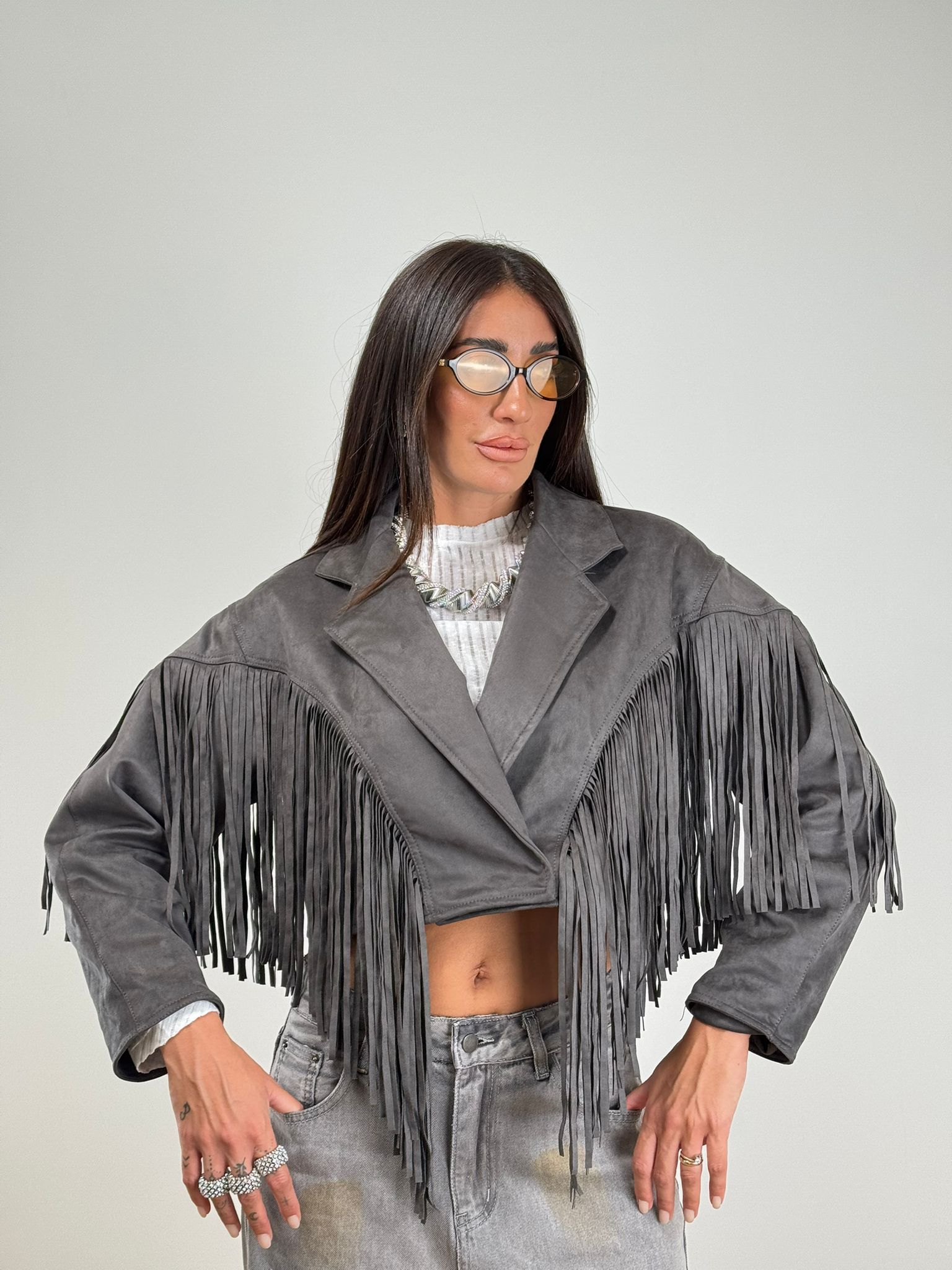 Giubbino CROPED FRANGE GREY 44183