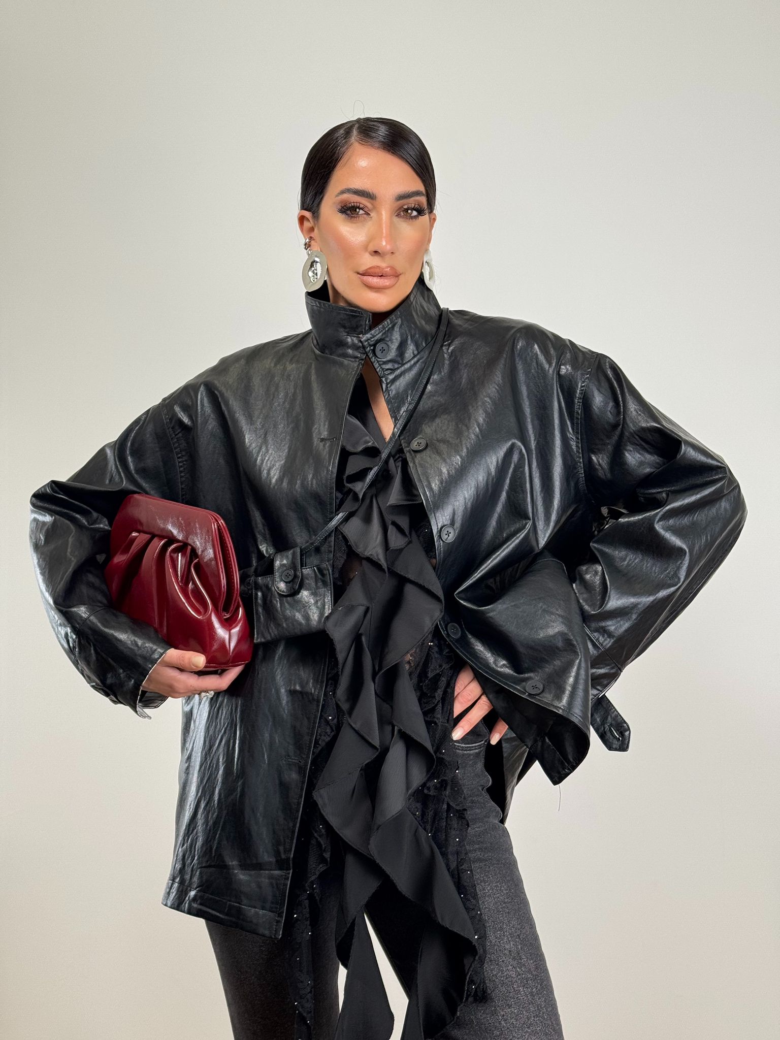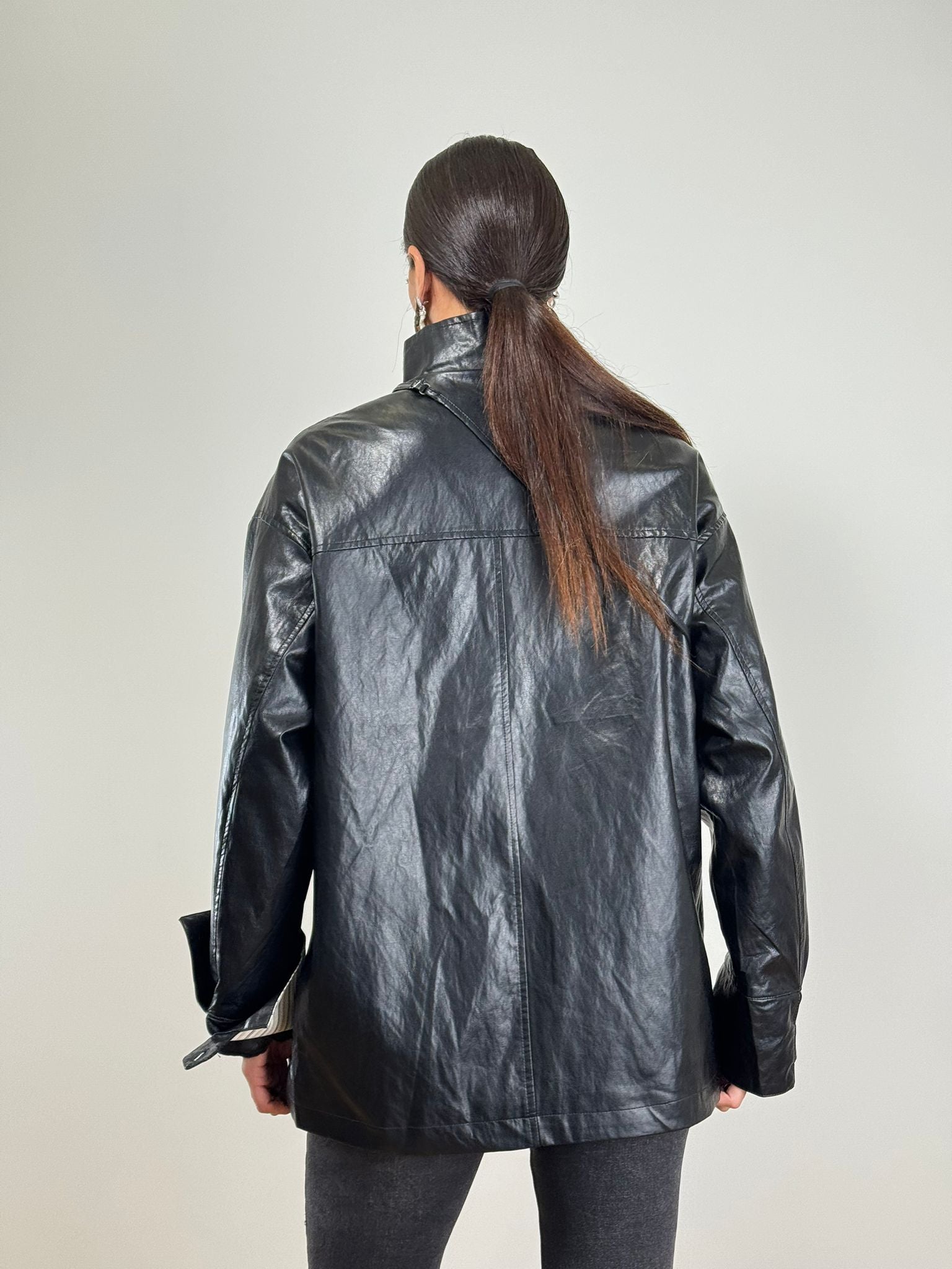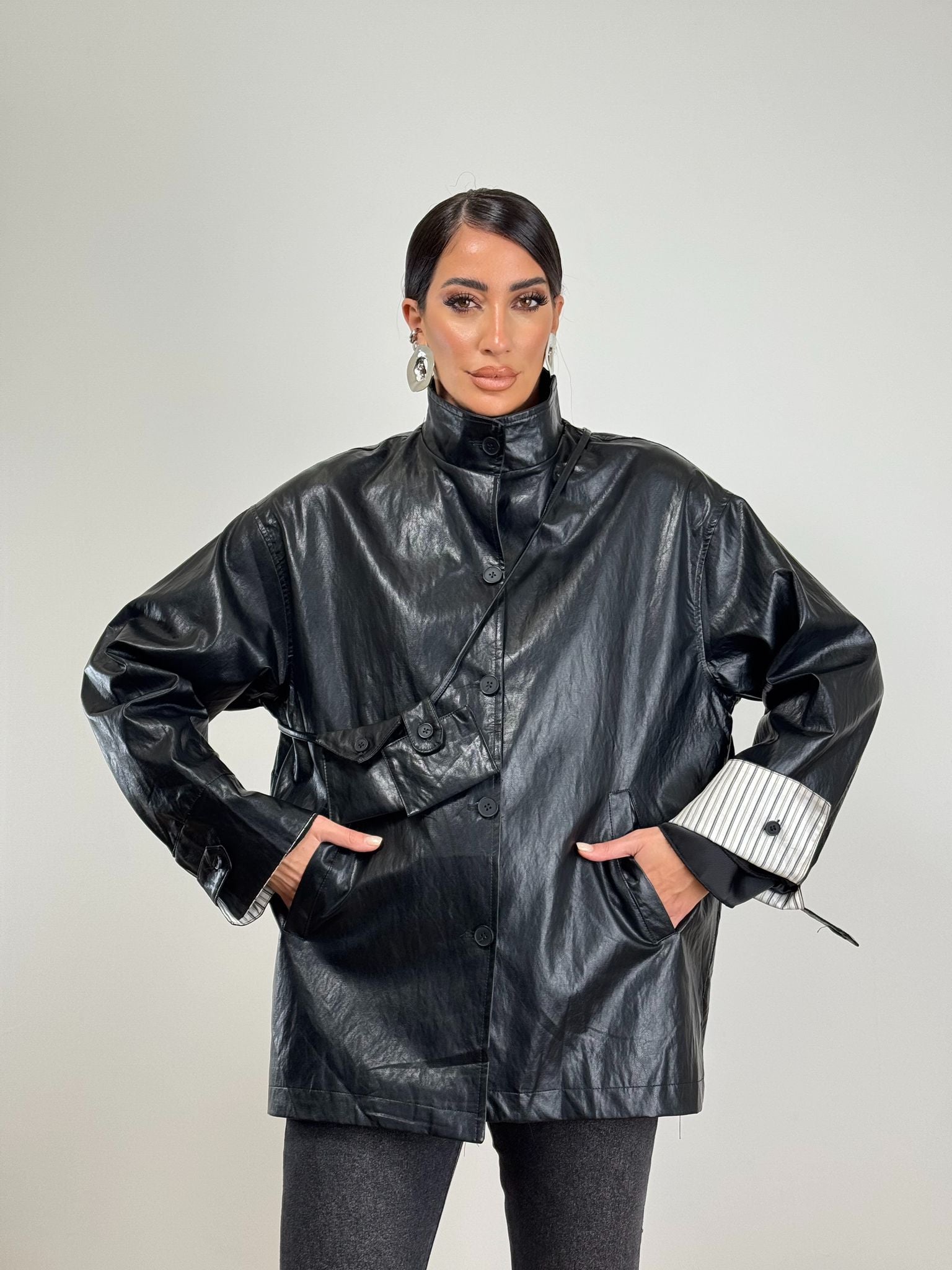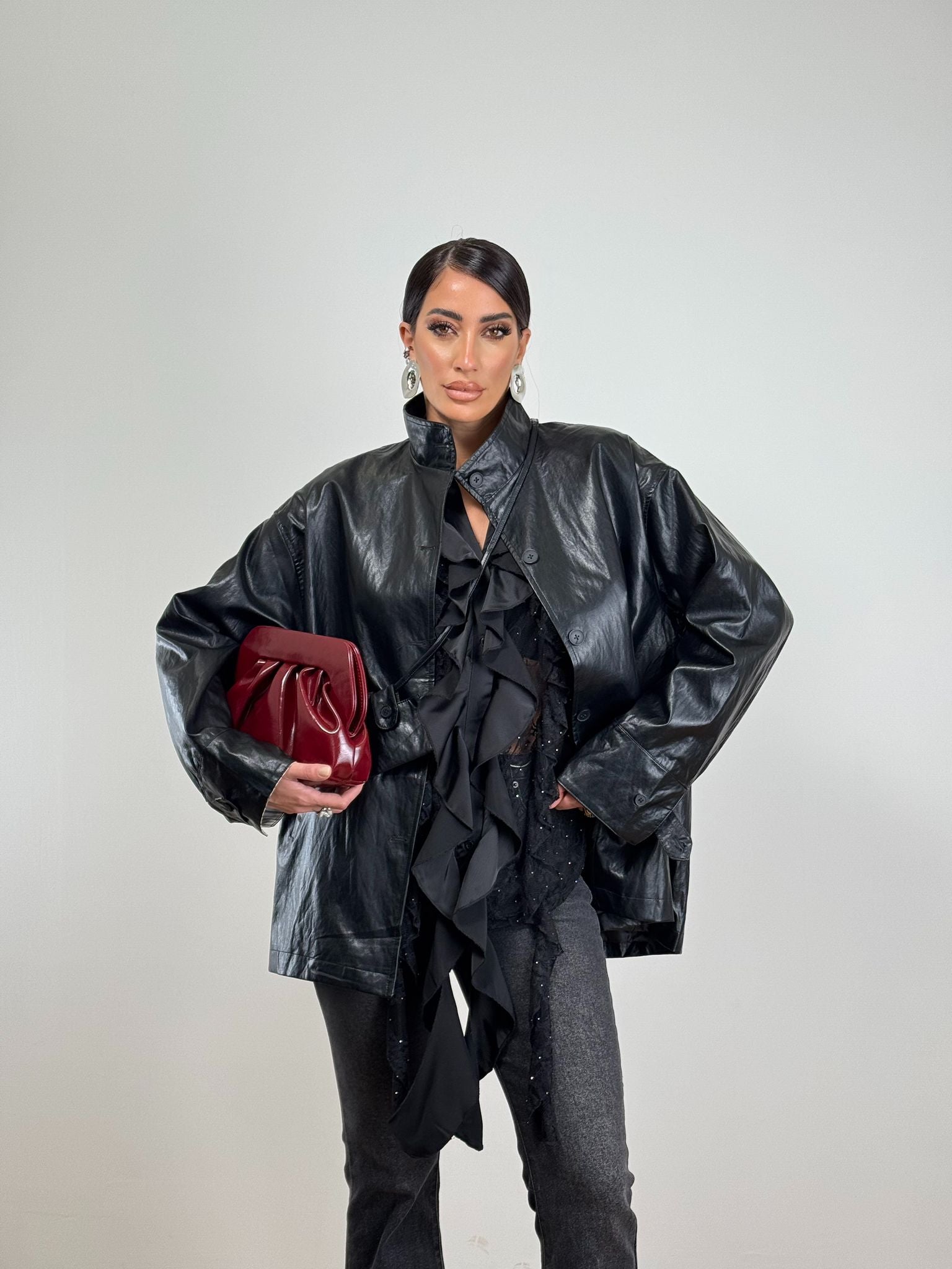 Giubbino in ecopelle lucido con pochettina inclusa a tracolla top quality