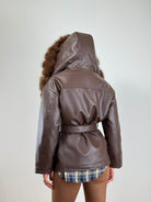 Giubbino ecopelle con cappuccio e fusciacca , interamente foderato in pelliccia in tasche . Azienda MOCHY top quality..taglia unica
