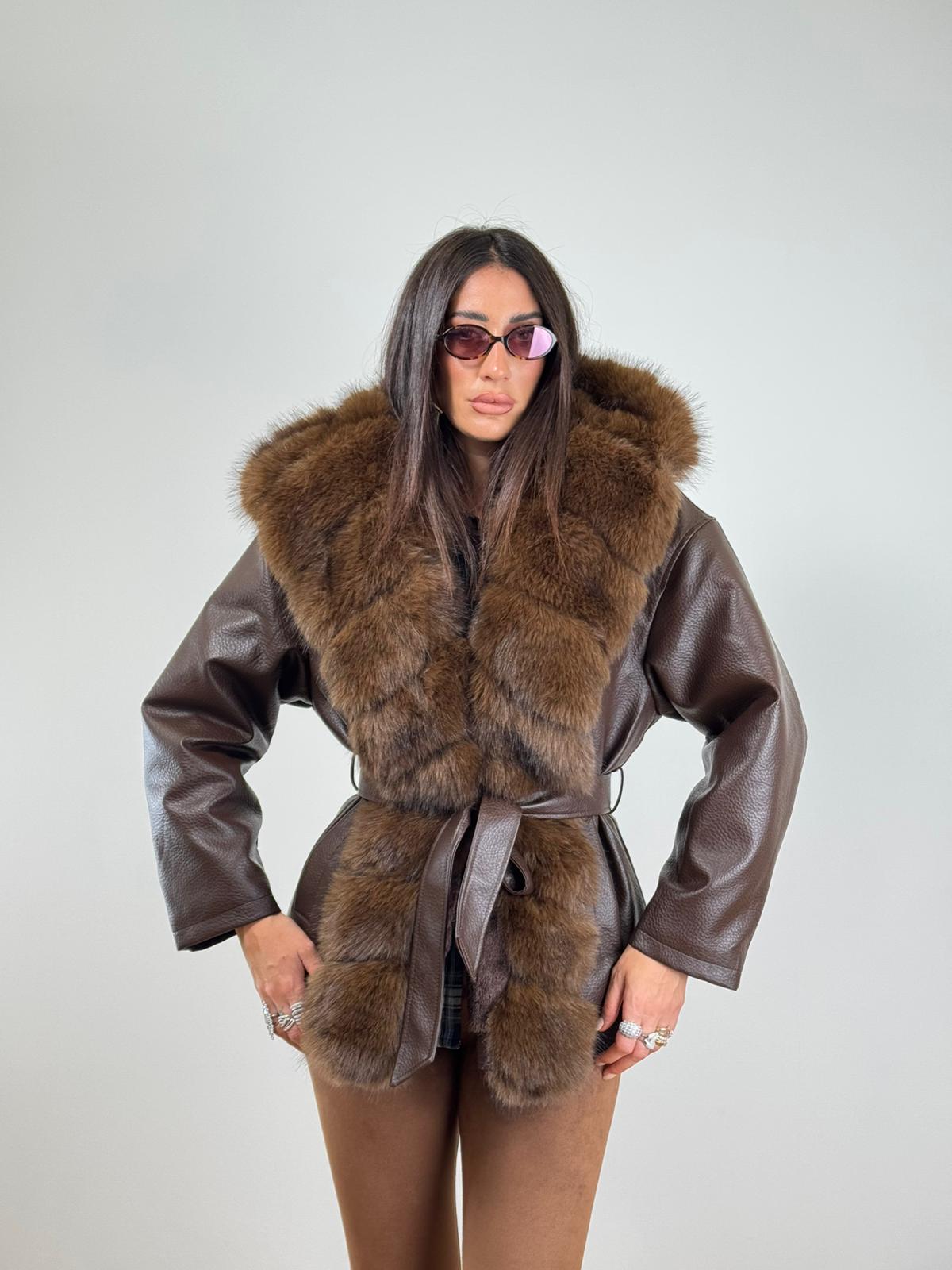 Giubbino ECOPELLE PELLICCIA MARRONE 11752