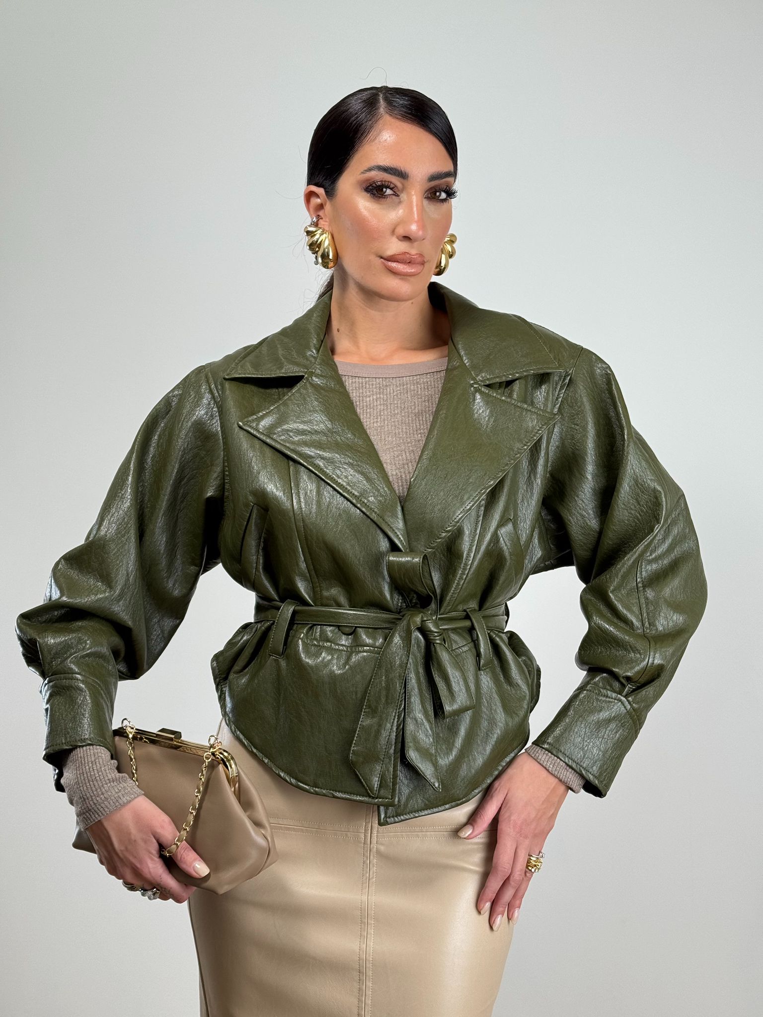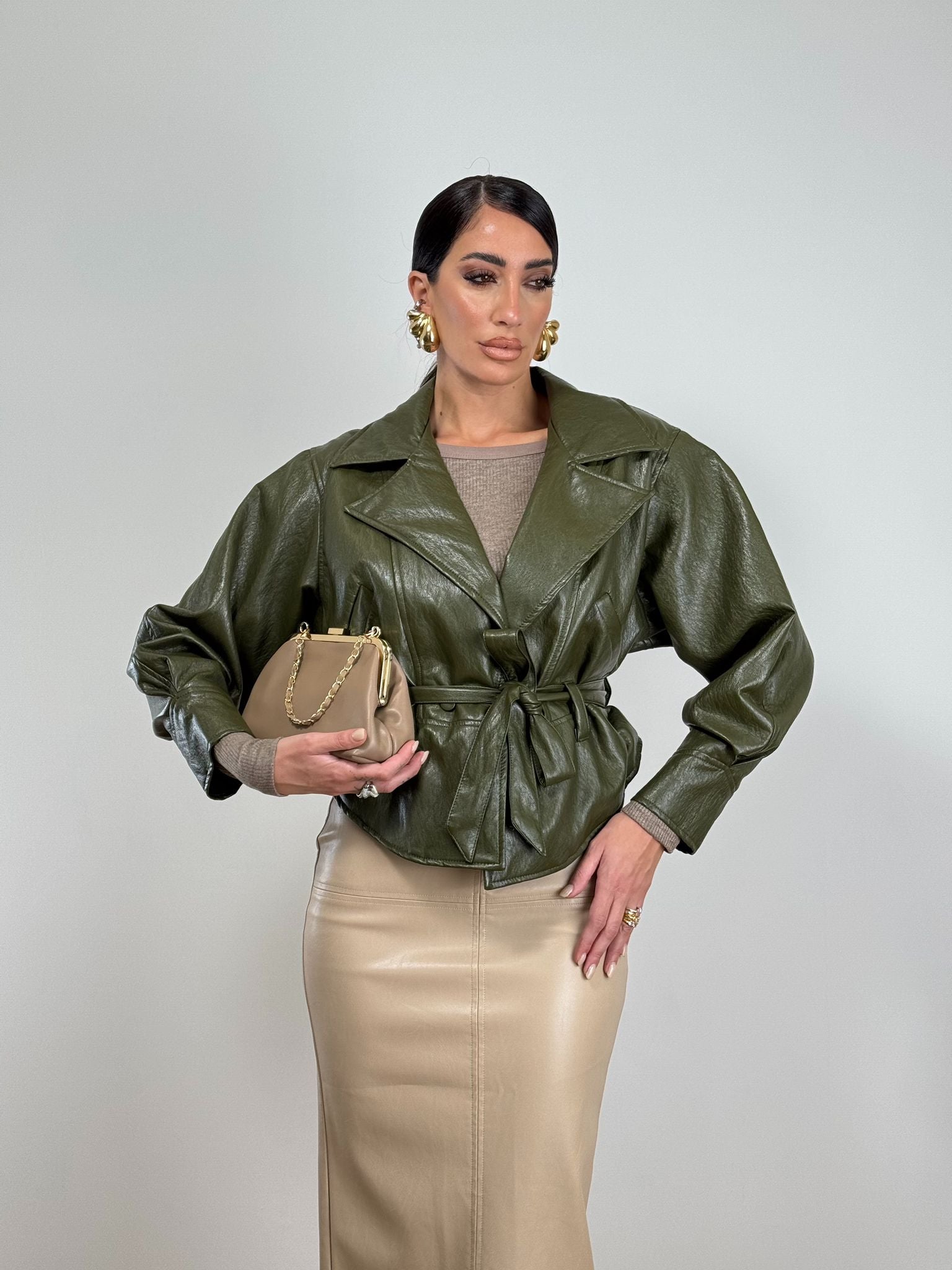 Giubbino ecopelle con fusciacca top quality