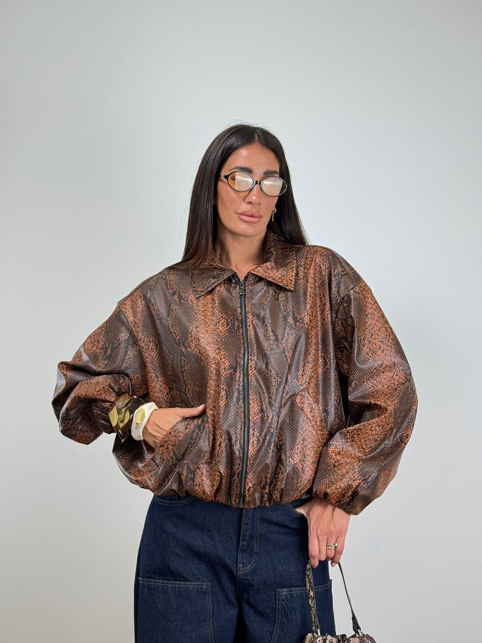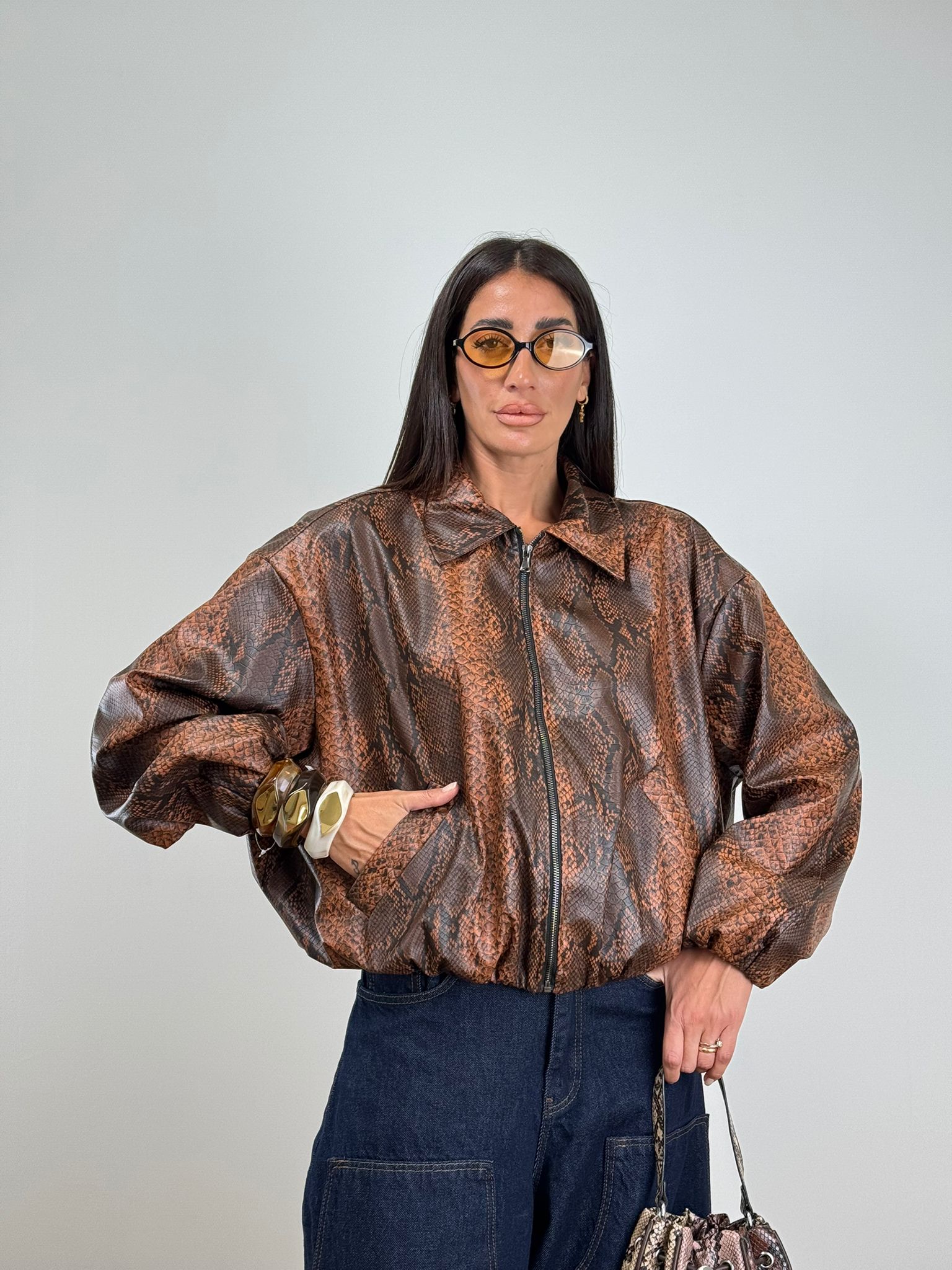 Giubbino LUMINA PITONATO MARRONE , a palloncino oversize