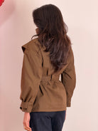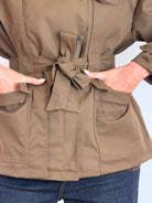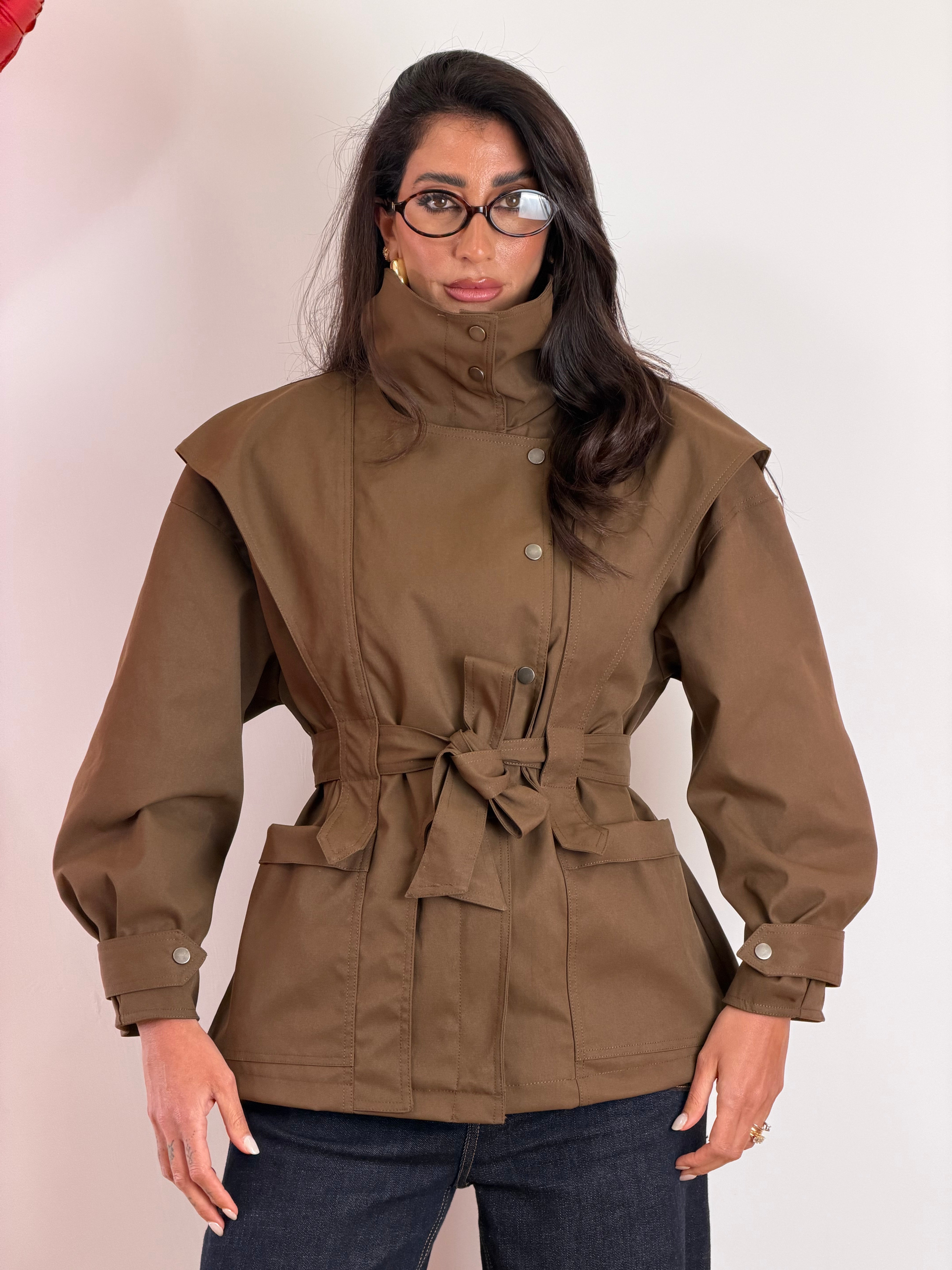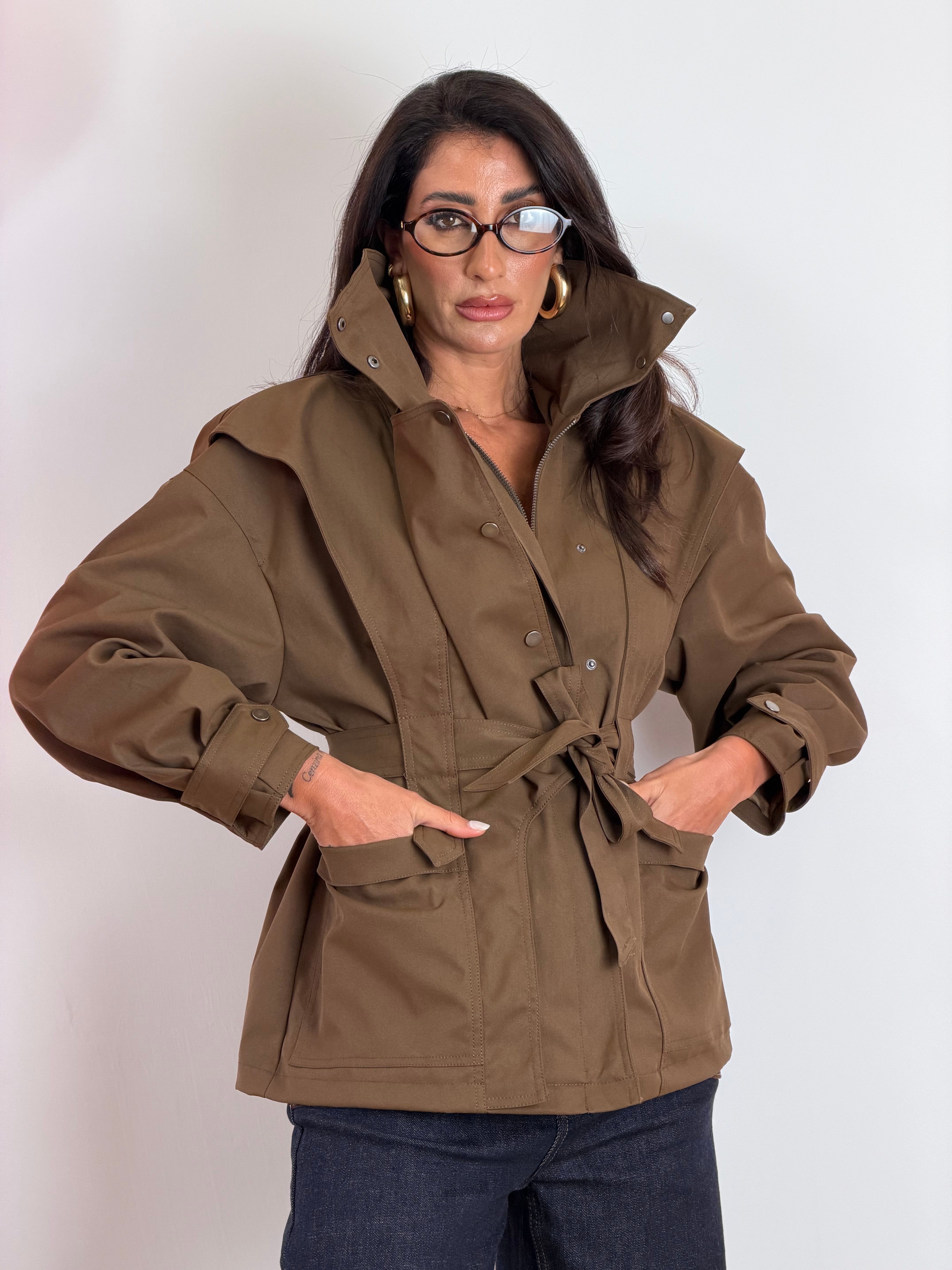 Giubbotto september marrone con zip,bottoni e cintura in vita taglia unica