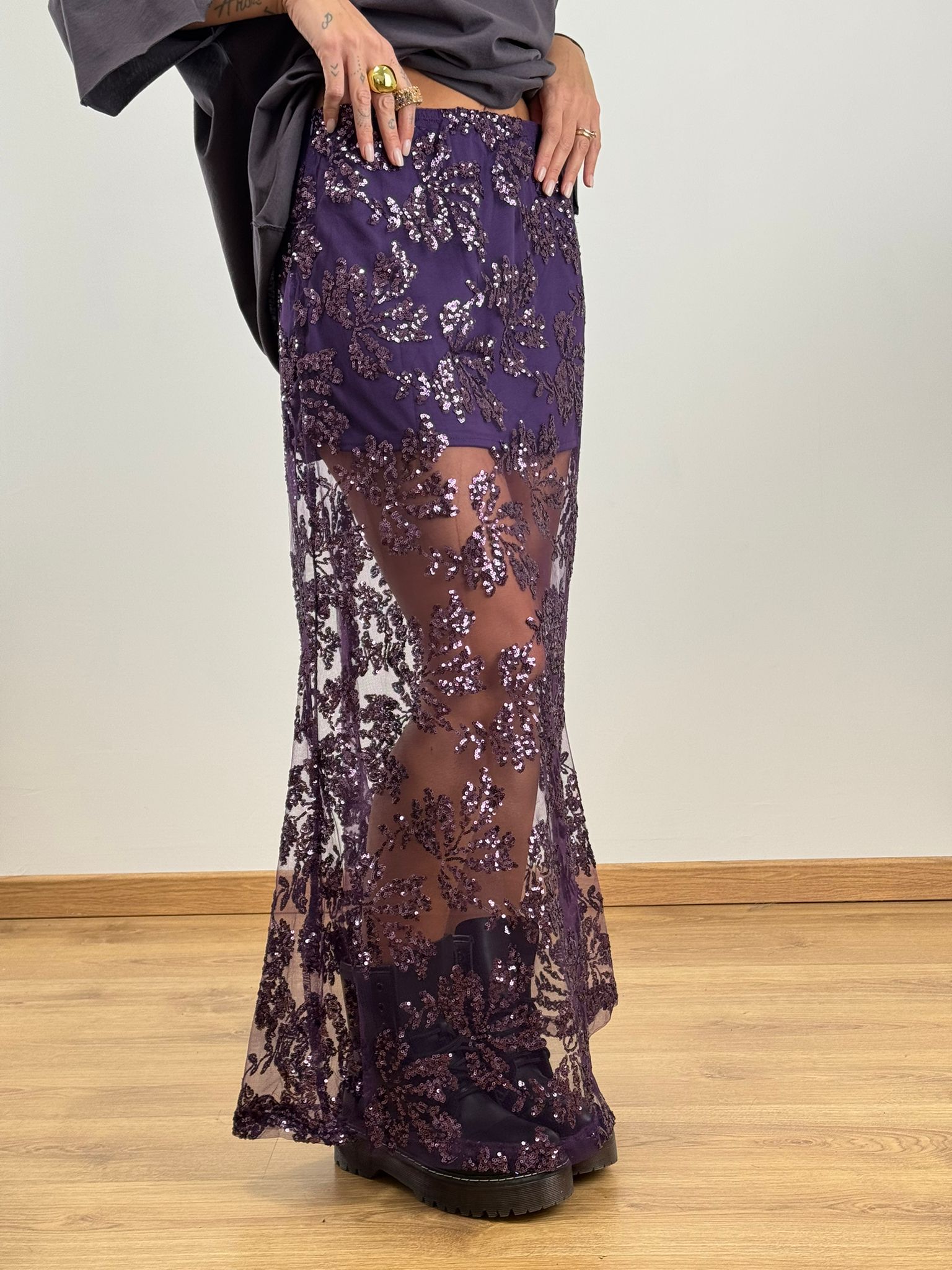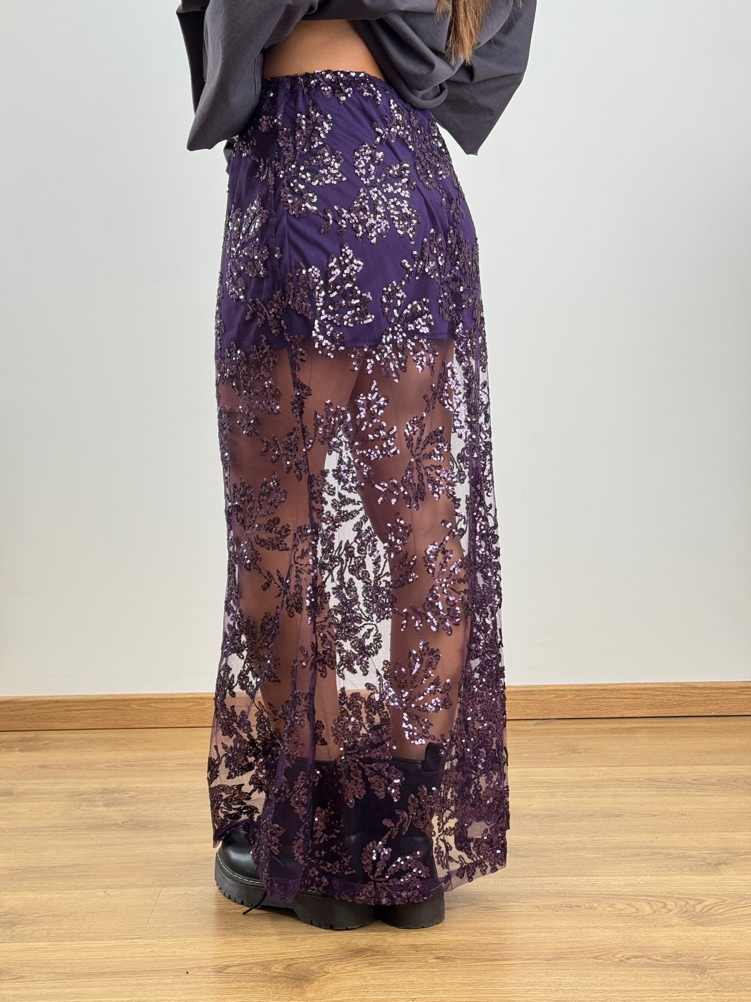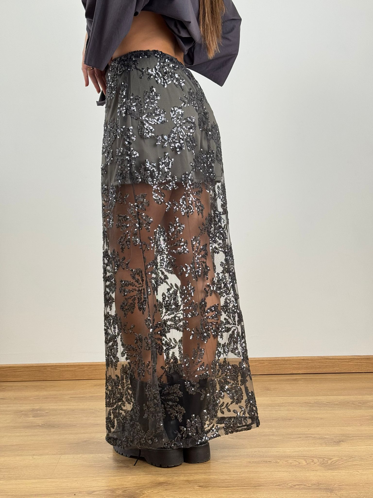 Gonna velata con inserti in paillettes e sottana , a taglie elastico in vita