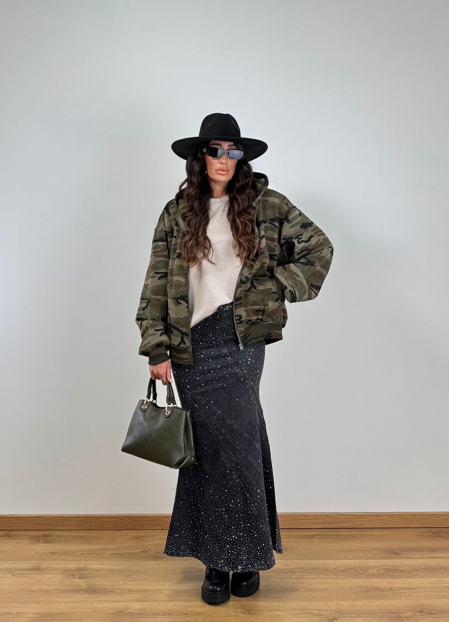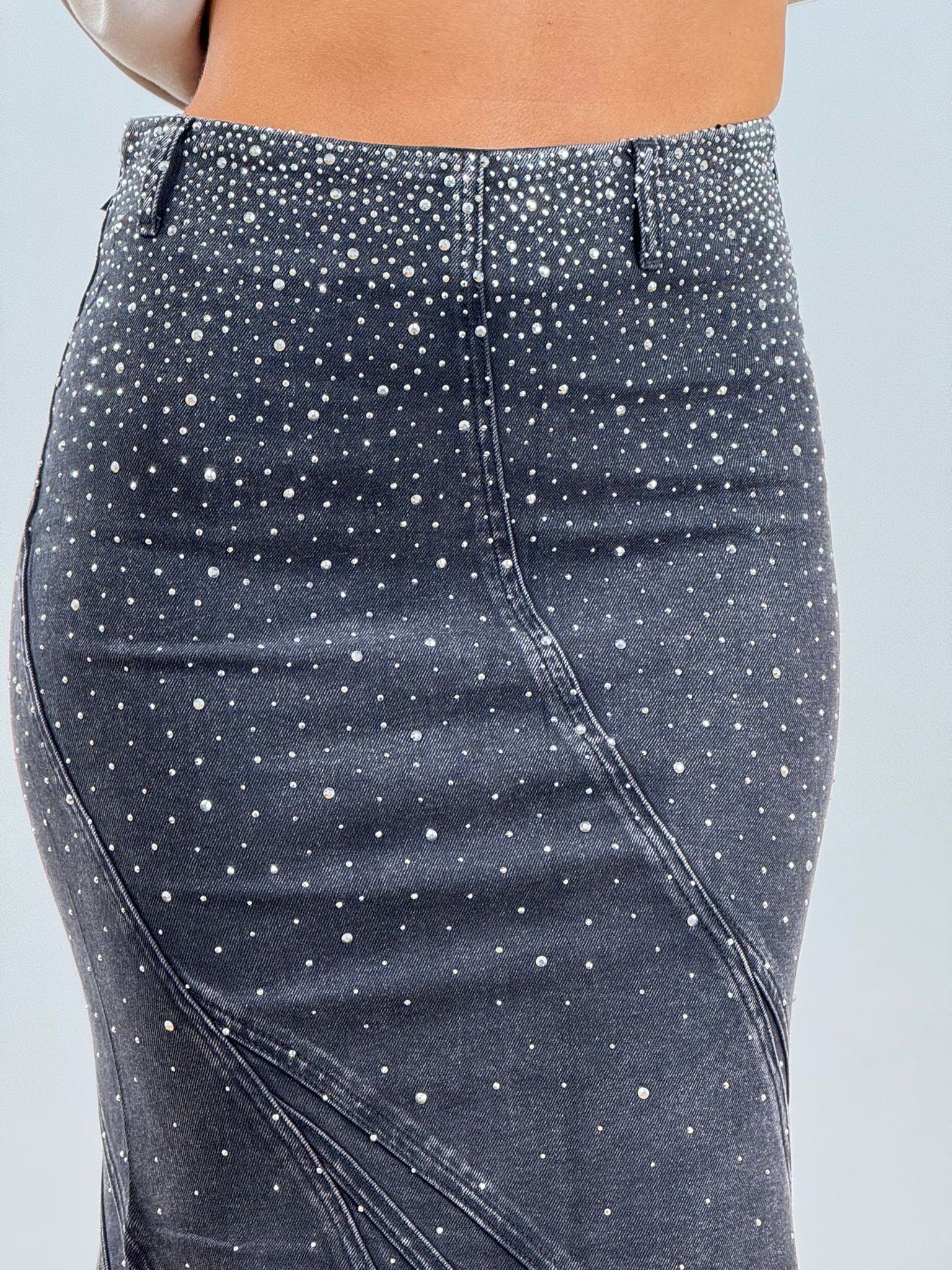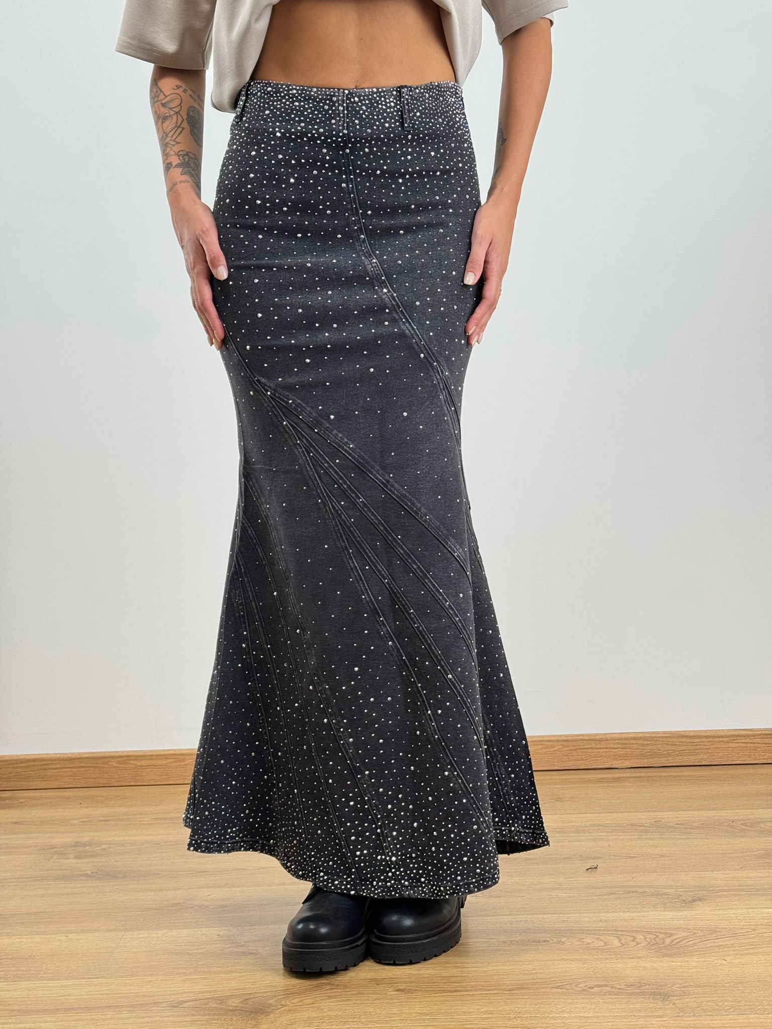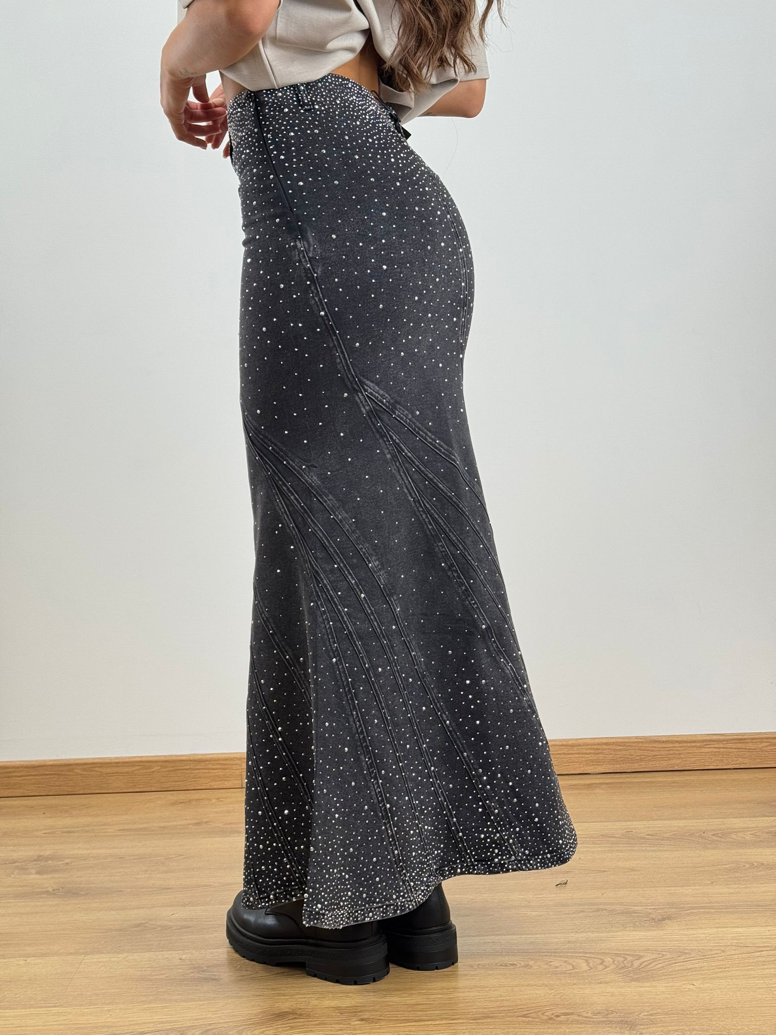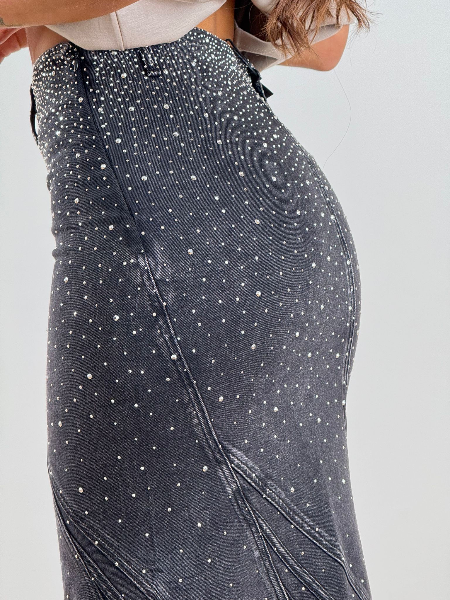 Gonna elasticizzata a sirena con applicazioni gioiello, aderente e svasata sul fondo TOP QUALITY