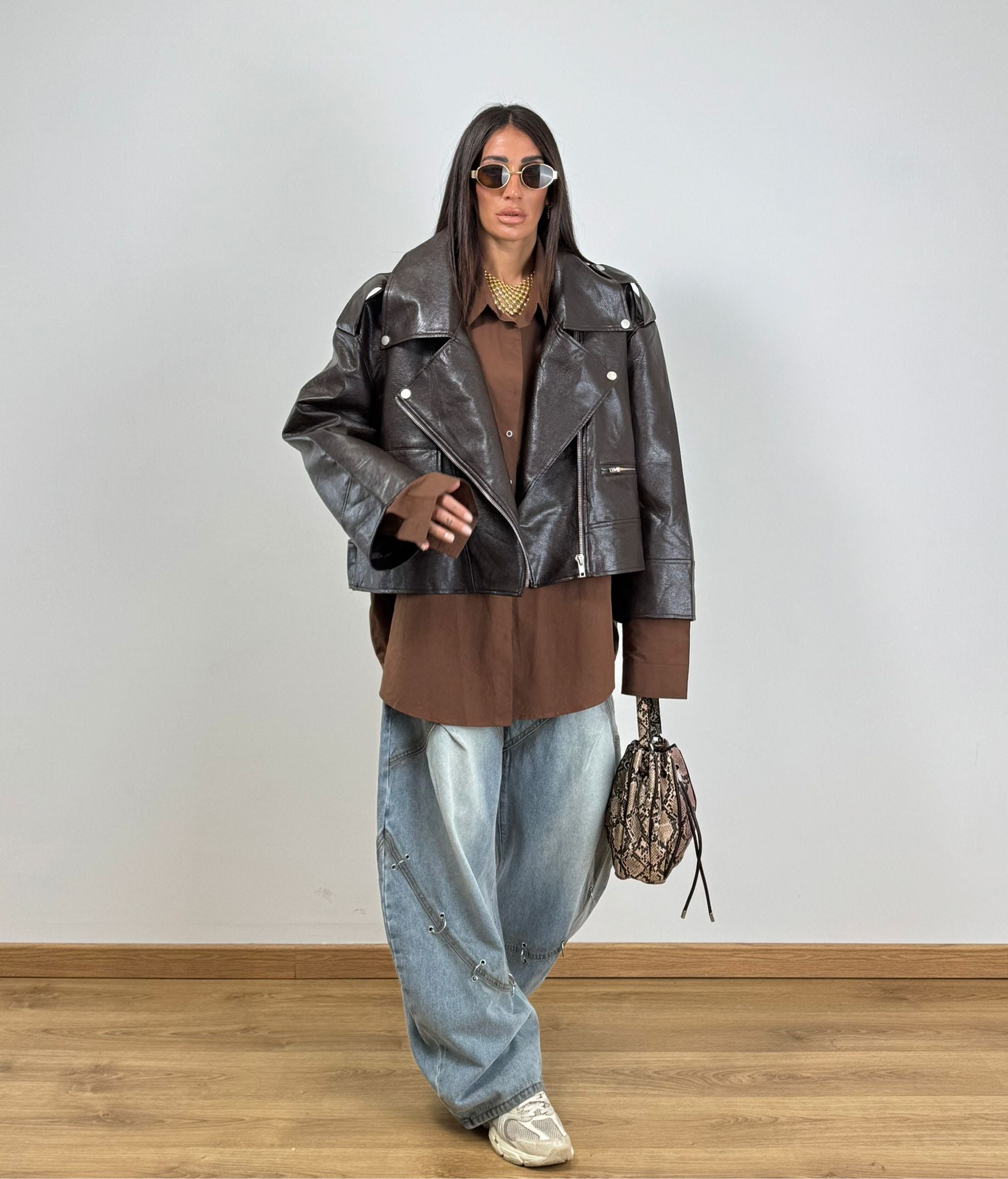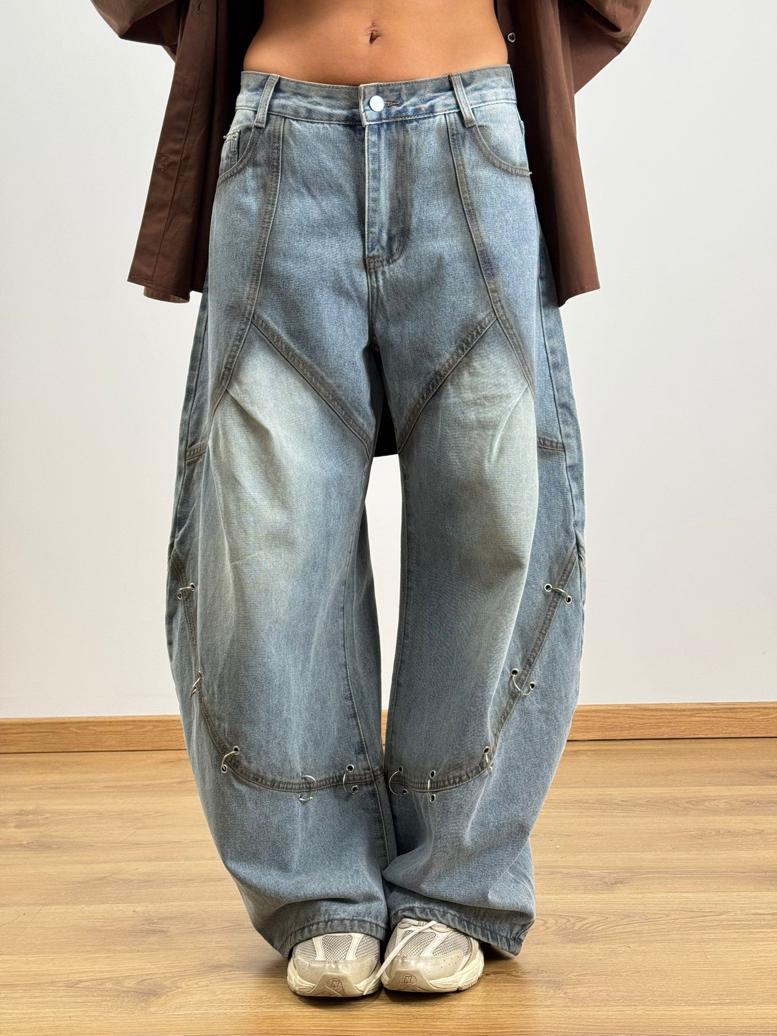 Jeans Balloon gamba larga con anelli applicati