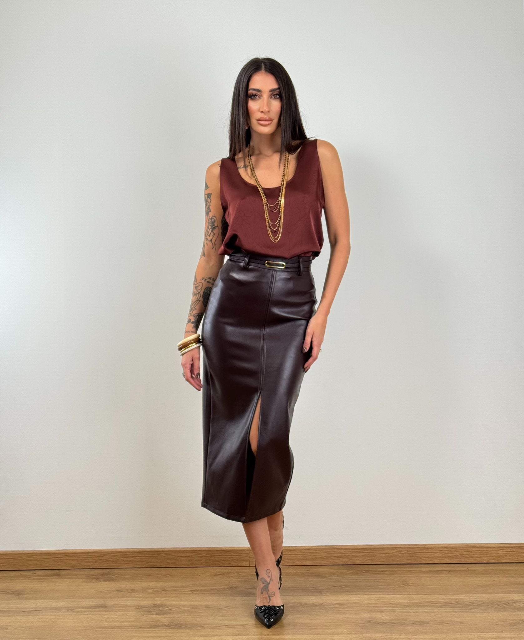 Gonna longuette in ecopelle con cintura inclusa , elasticizzata