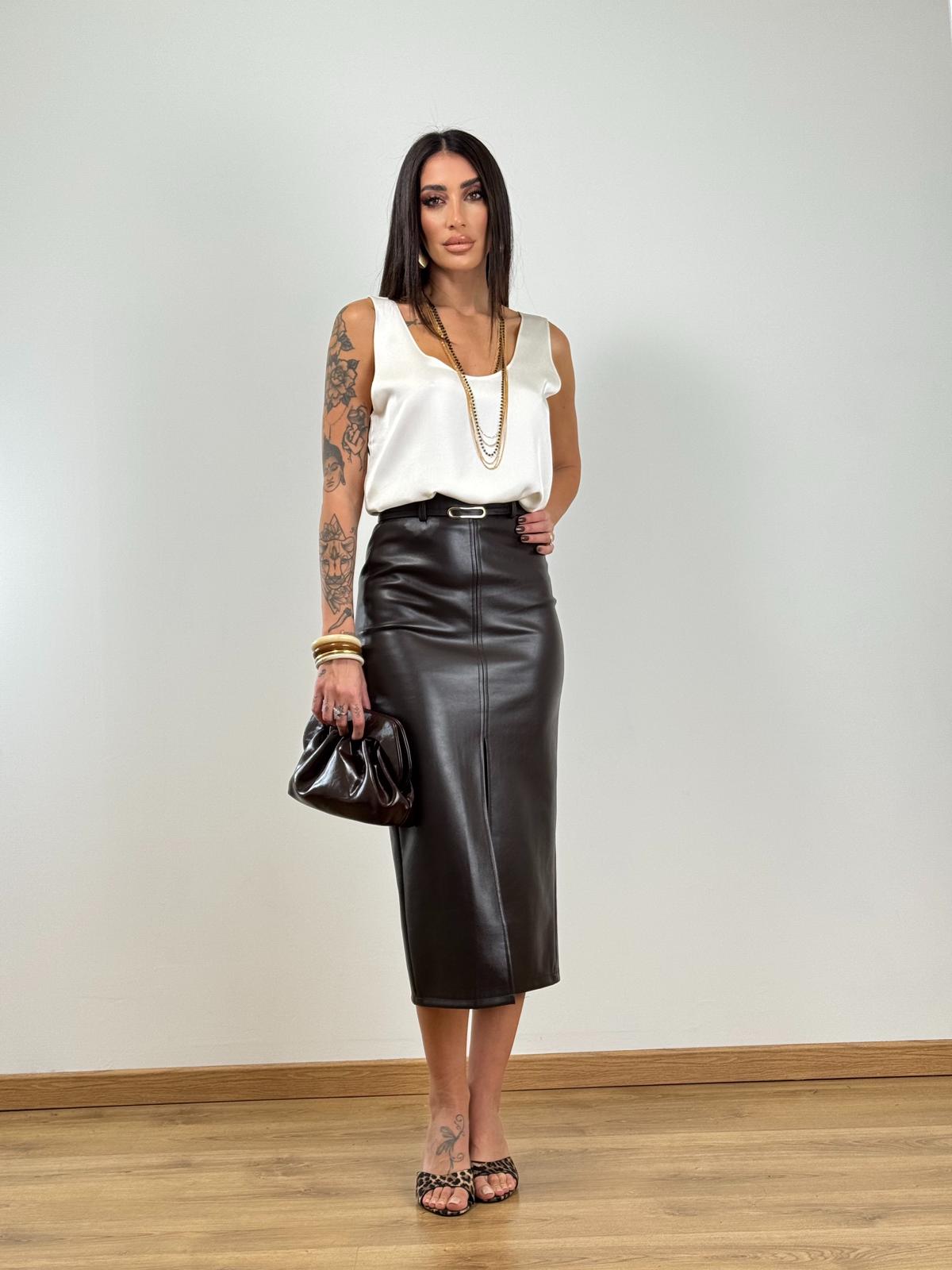 Gonna longuette in ecopelle con cintura inclusa , elasticizzata