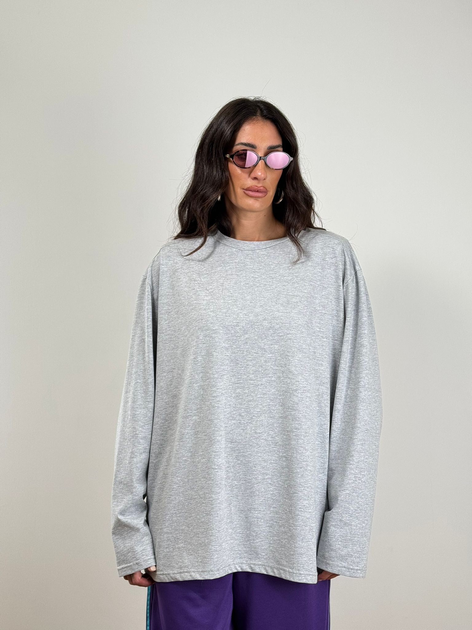 Maglia marca AZARA top quality in cotone con spalline oversize taglia Unica maniche lunfje