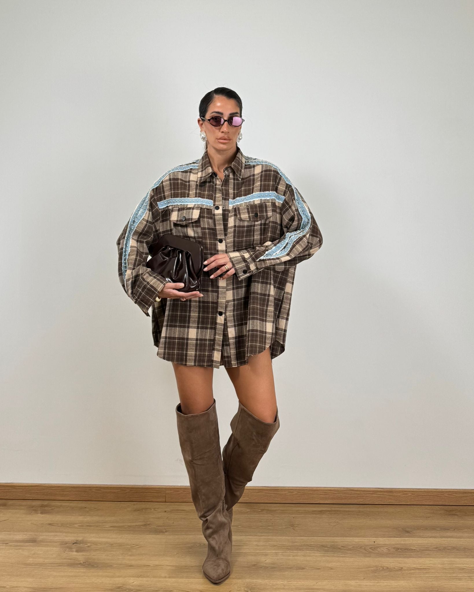 Maxi camicia abito quadri brown 36387