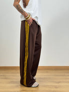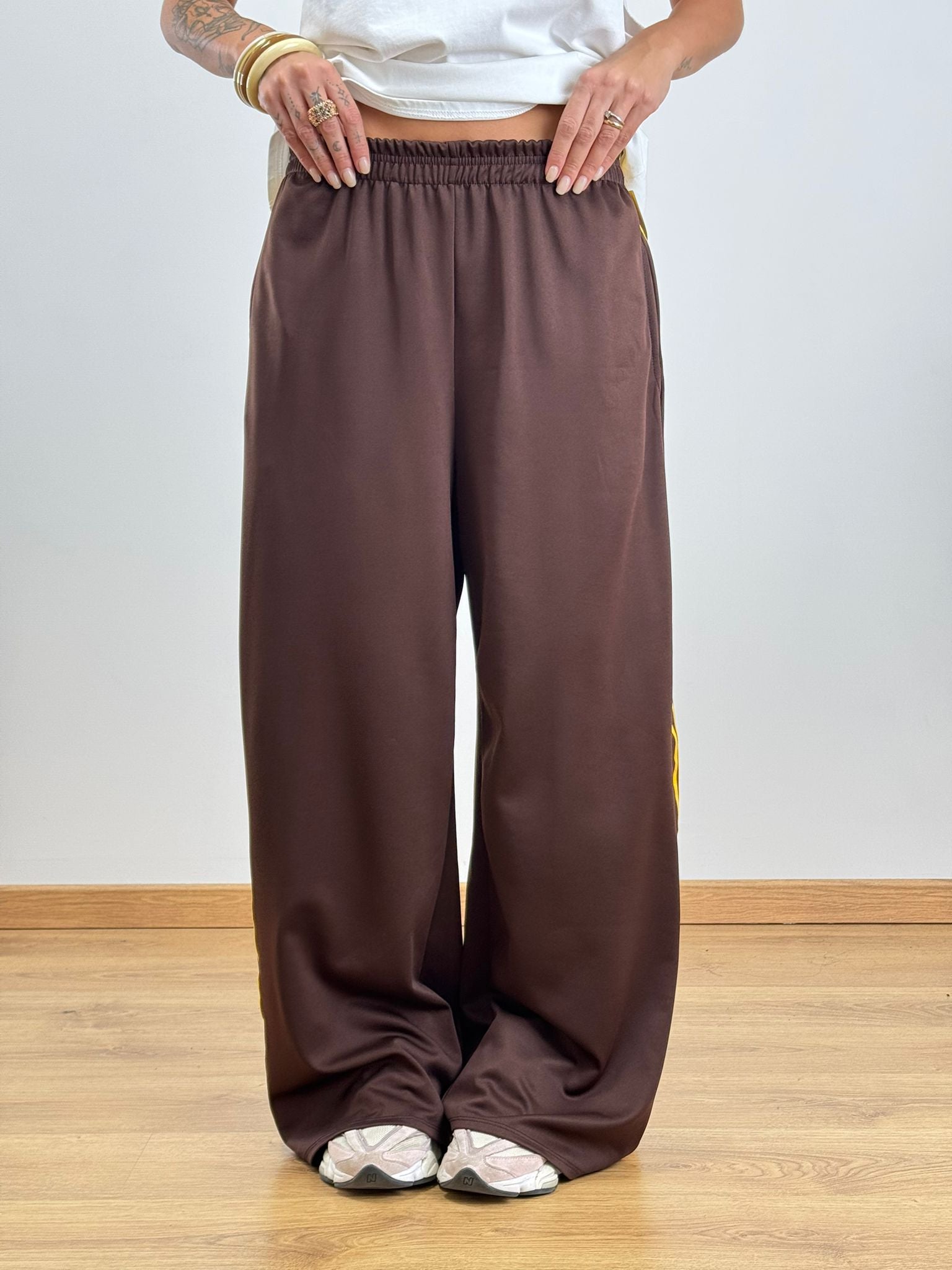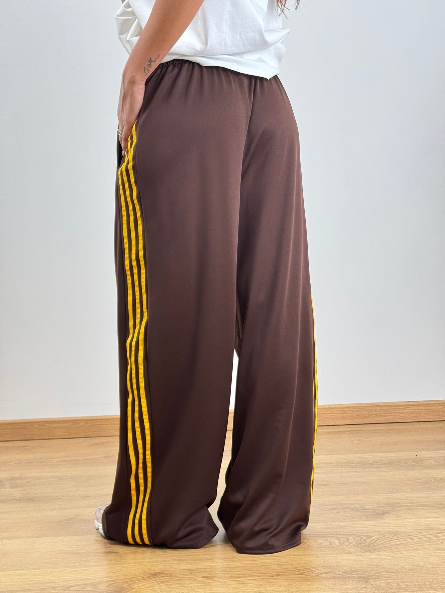Pantatuta con bande laterali taglia unica gamba larga elastico in vita veste fino 48