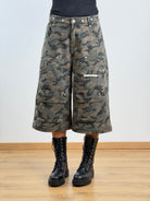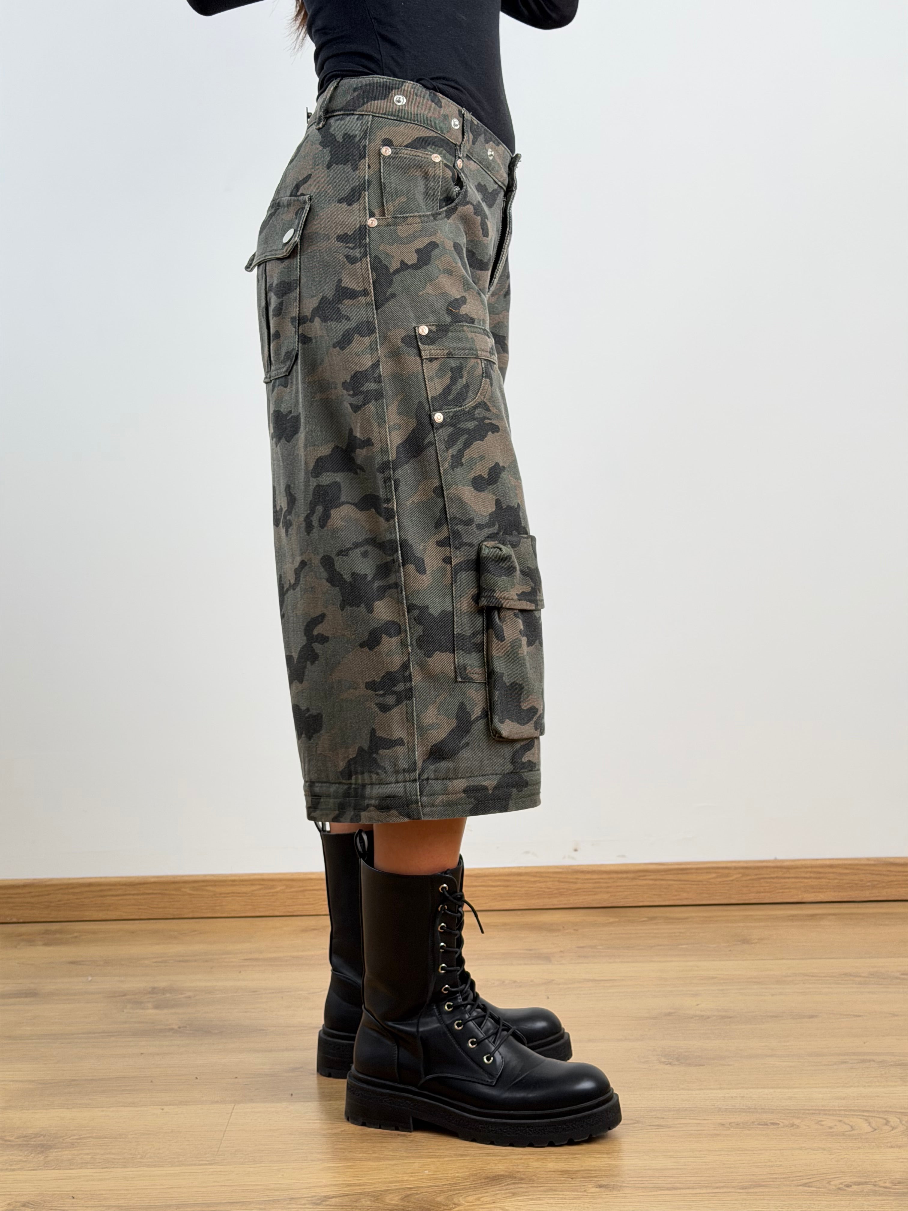 Salopette mimetica 3 pezzi, puó diventare jeans cargo con coulisse sul fondo o bermuda. 90%cotone.