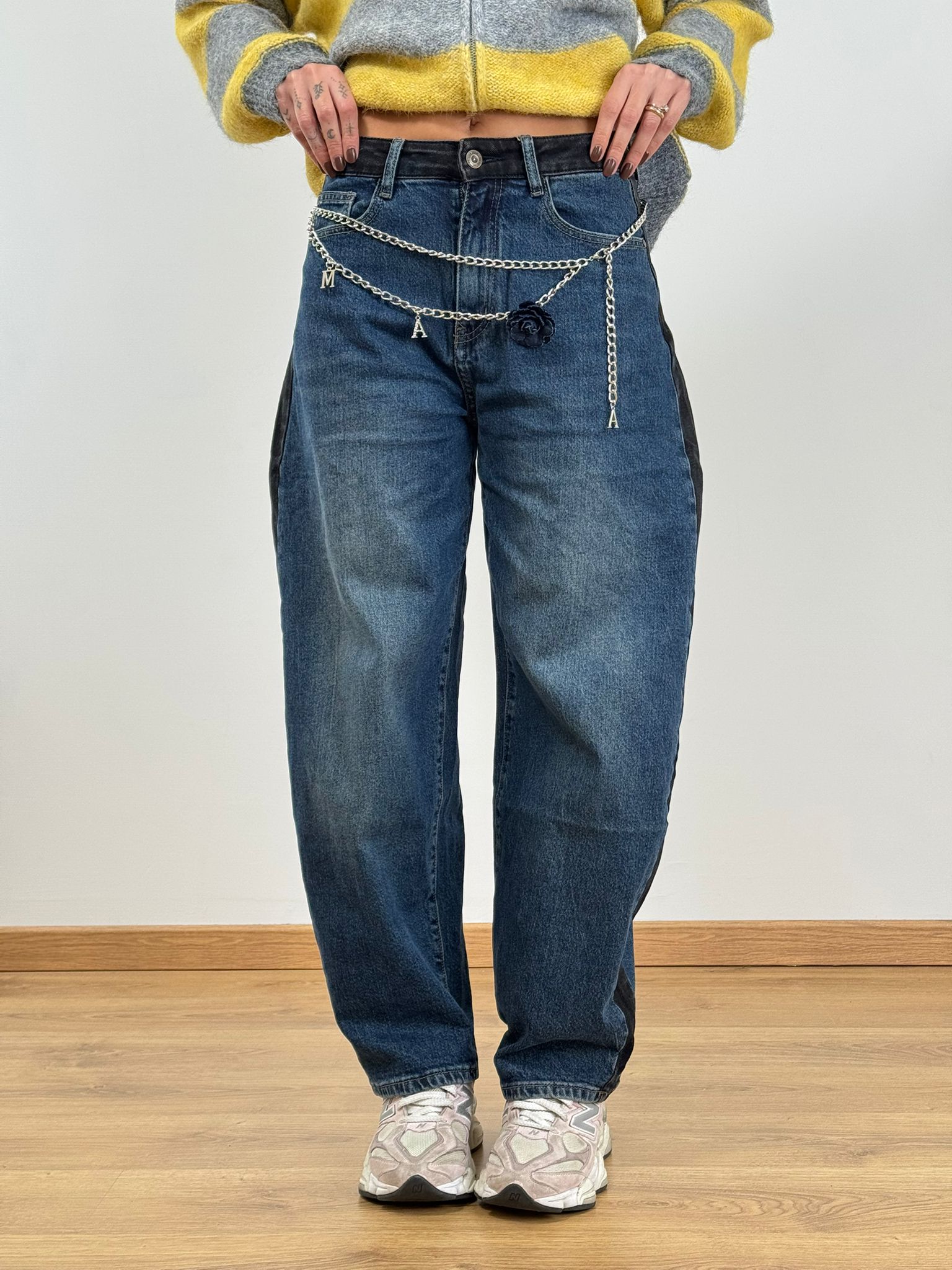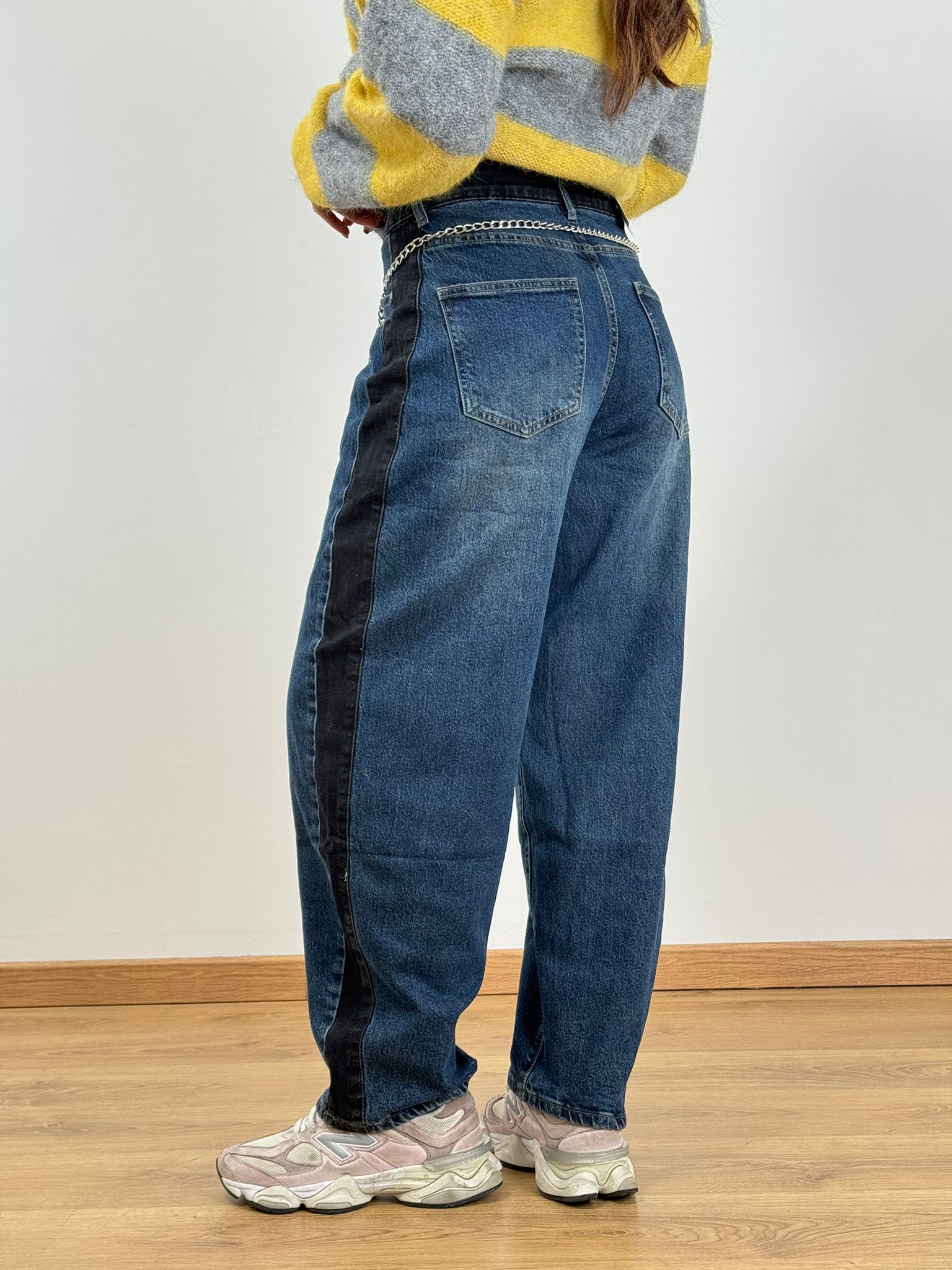 Jeans Balloon con cintura catena , bande laterali
