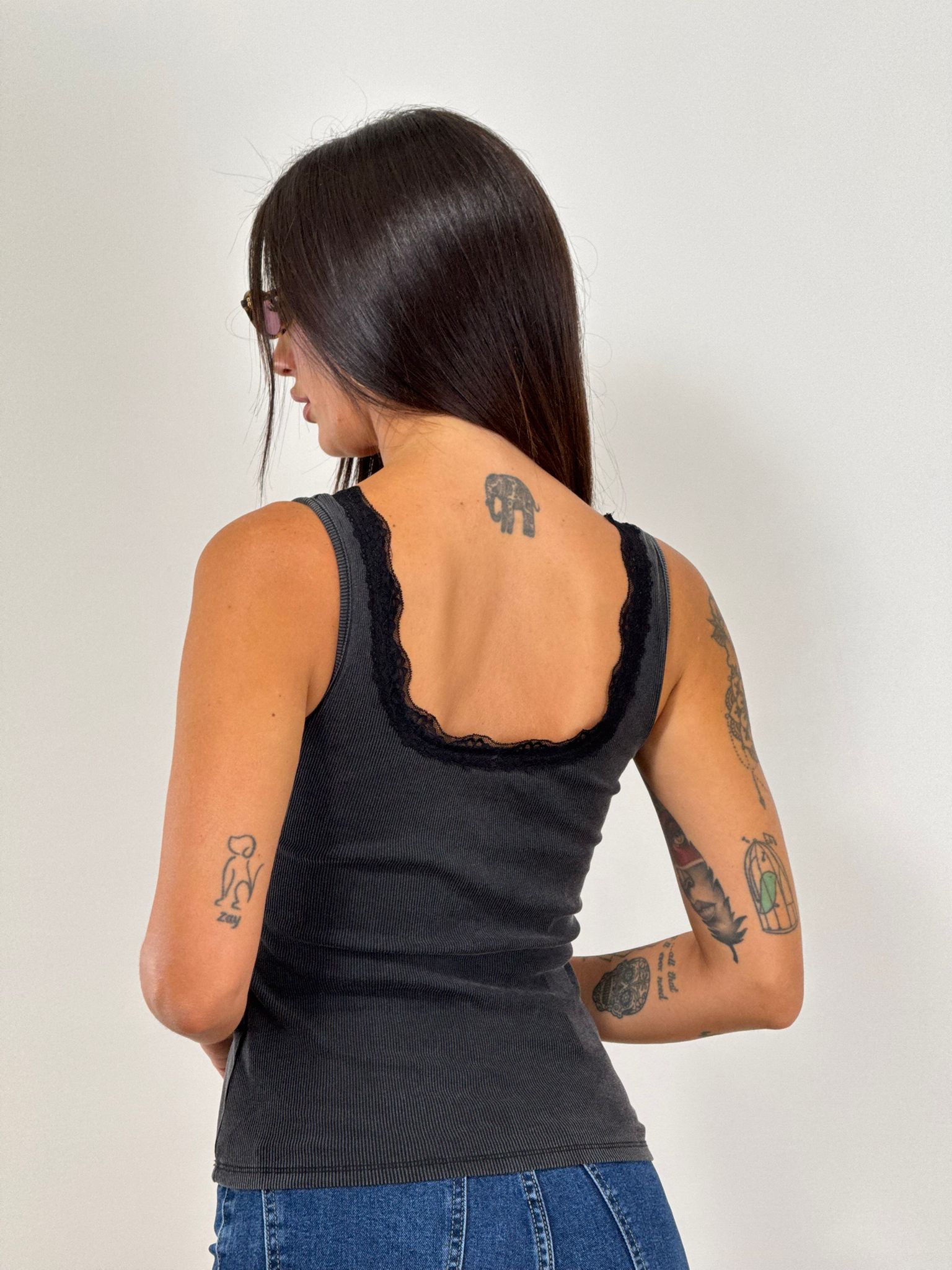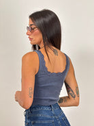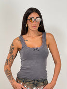 Canotta a costine con inserti in pizzo