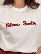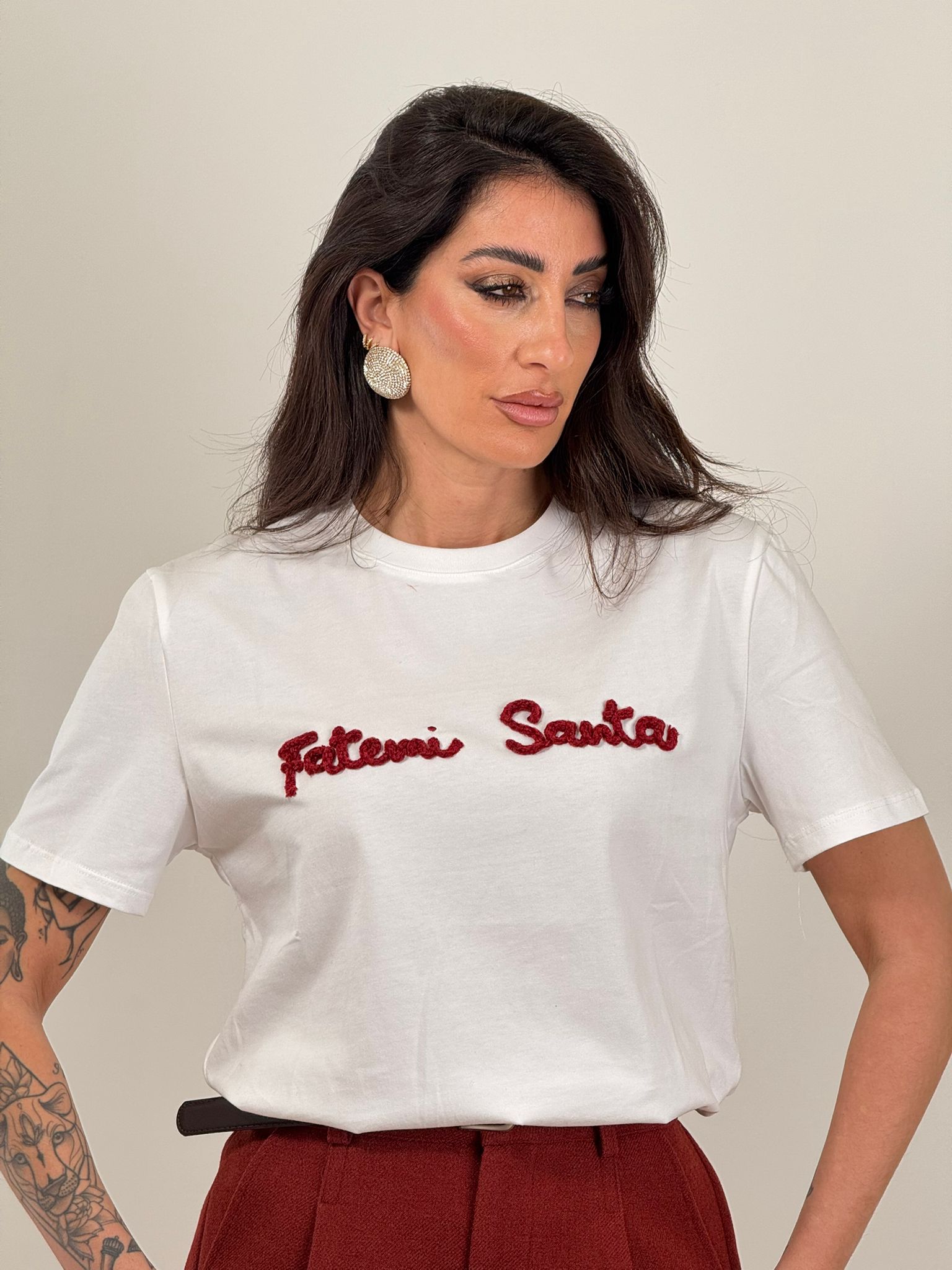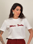T shirt bianca con scritta in velluto fatemi santa taglia unica