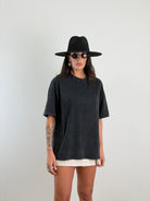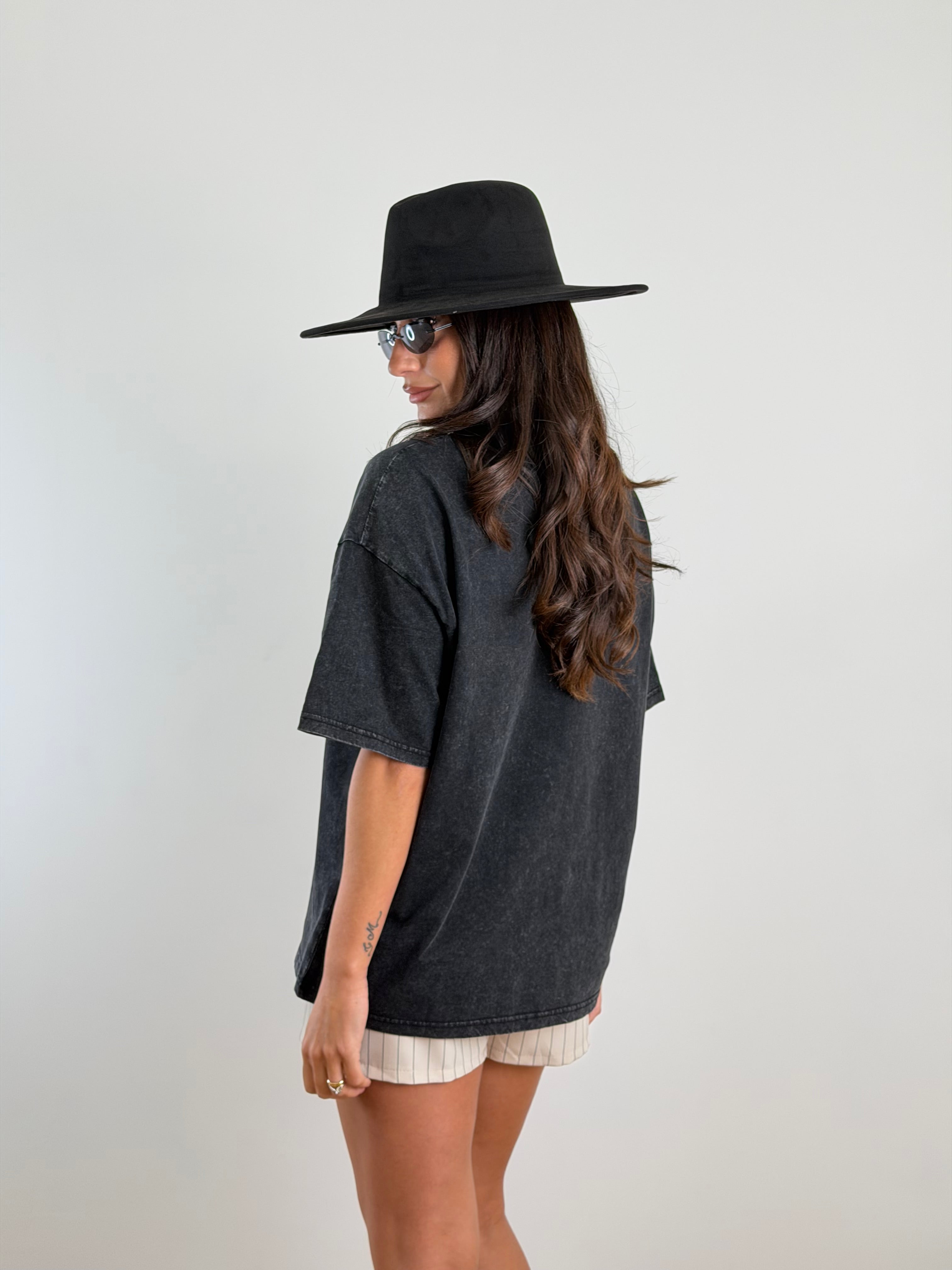 T-shirt a maniche corte.Modello: Oversize, taglio ampio e squadrato.Lavaggio effetto slavato/vintage. Girocollo a costine spesse.Spalla Scesa. 100% cotone. Taglia unica