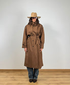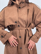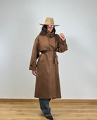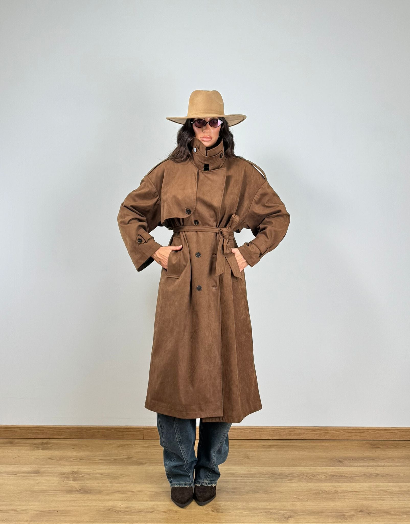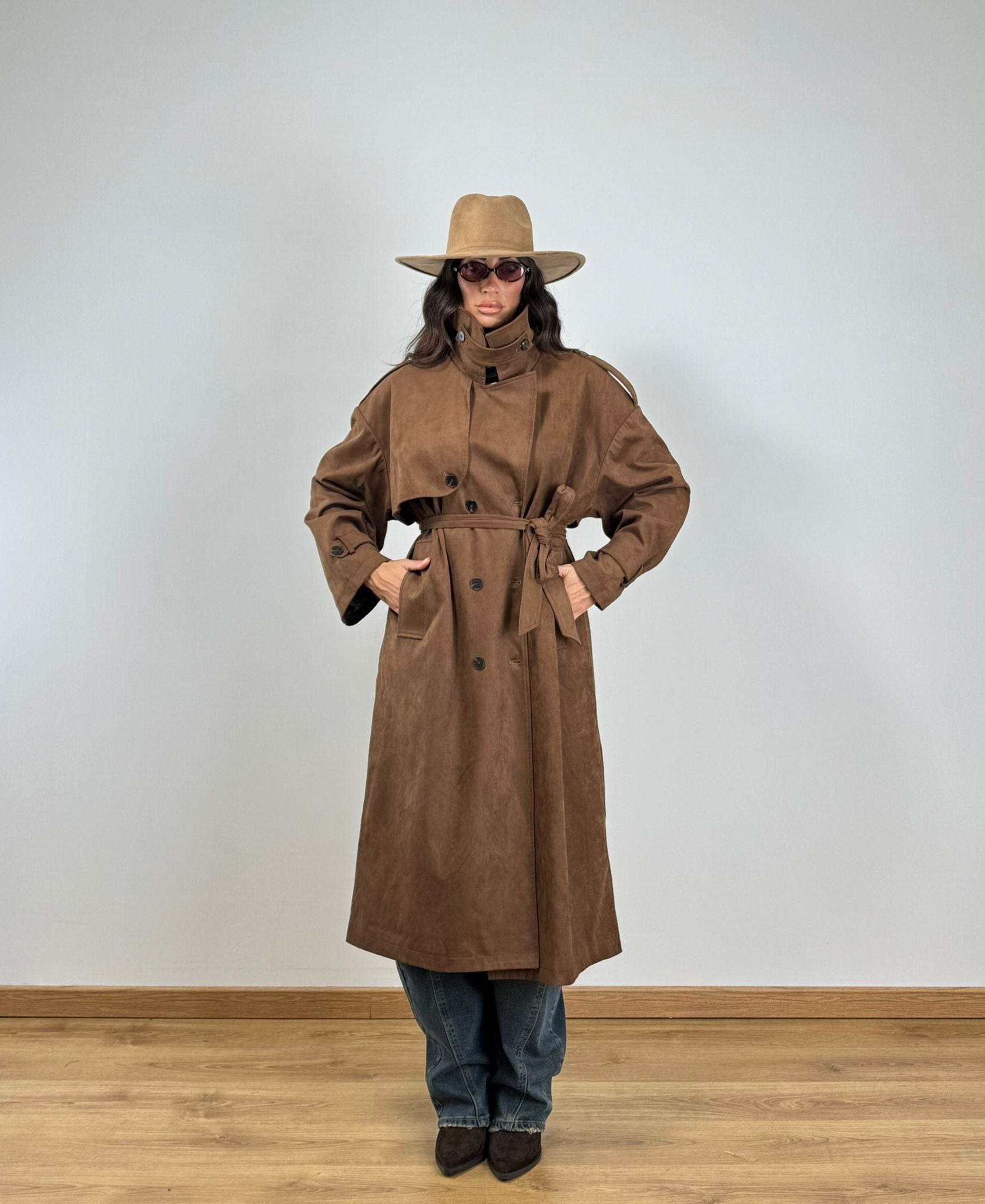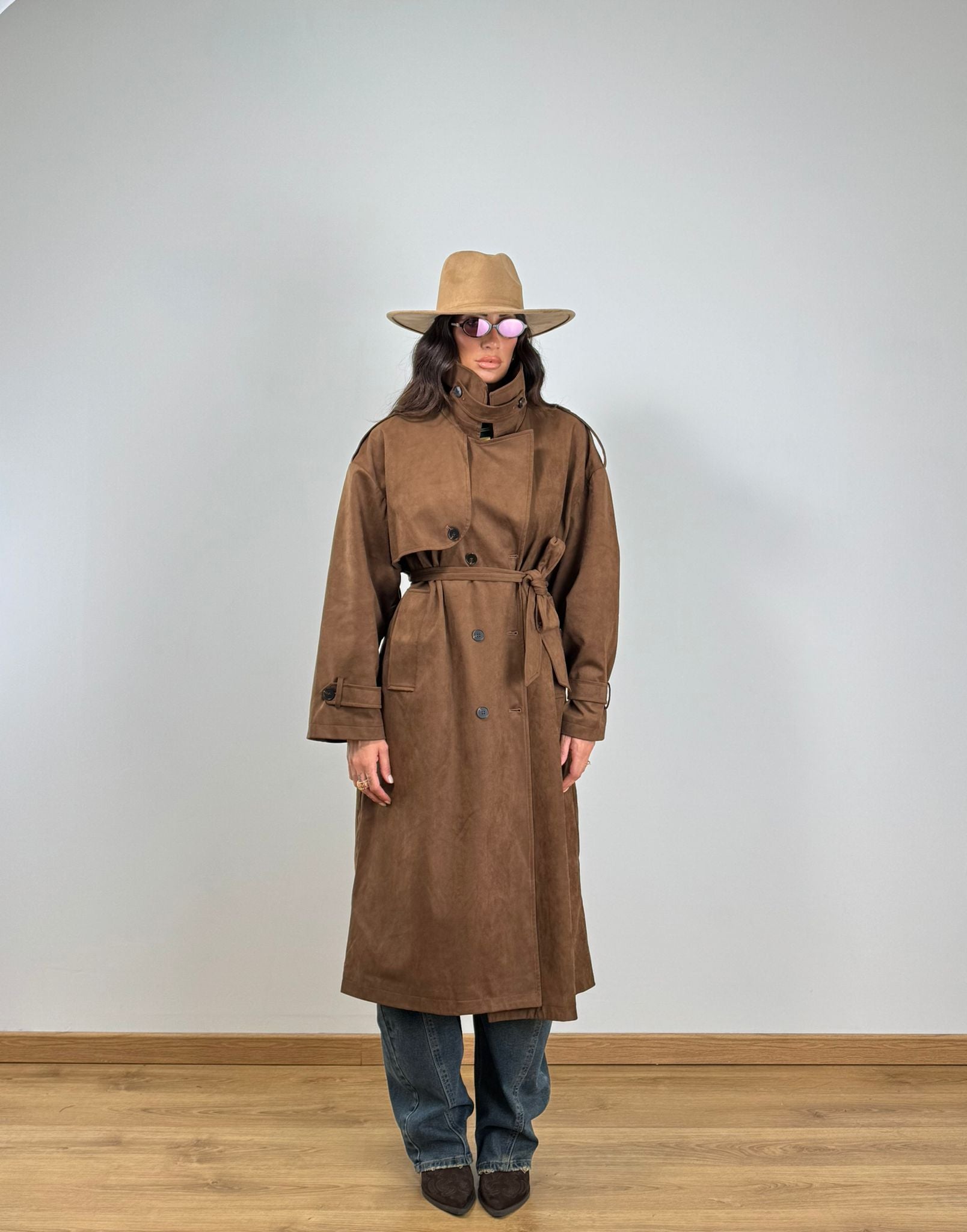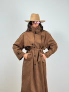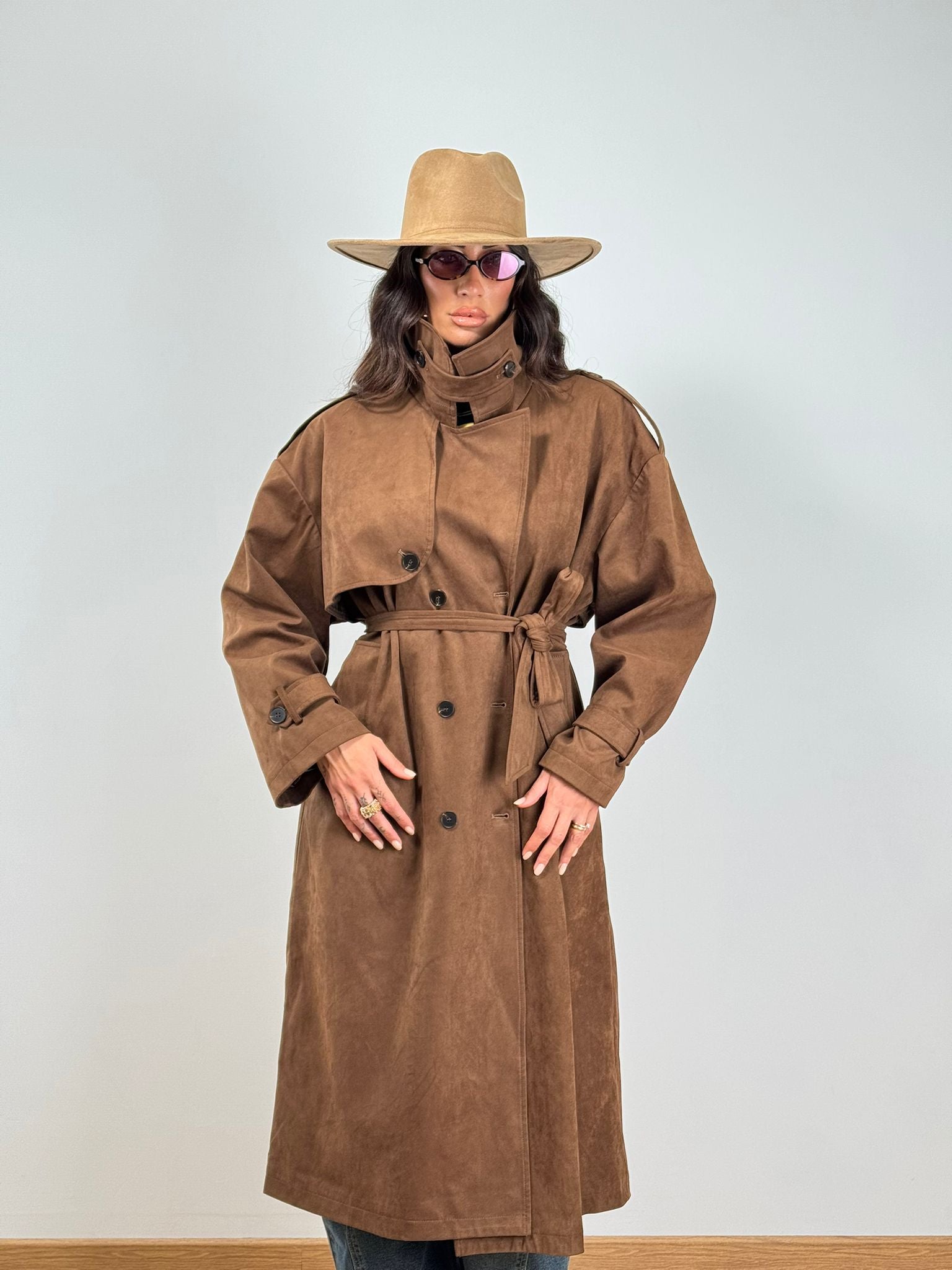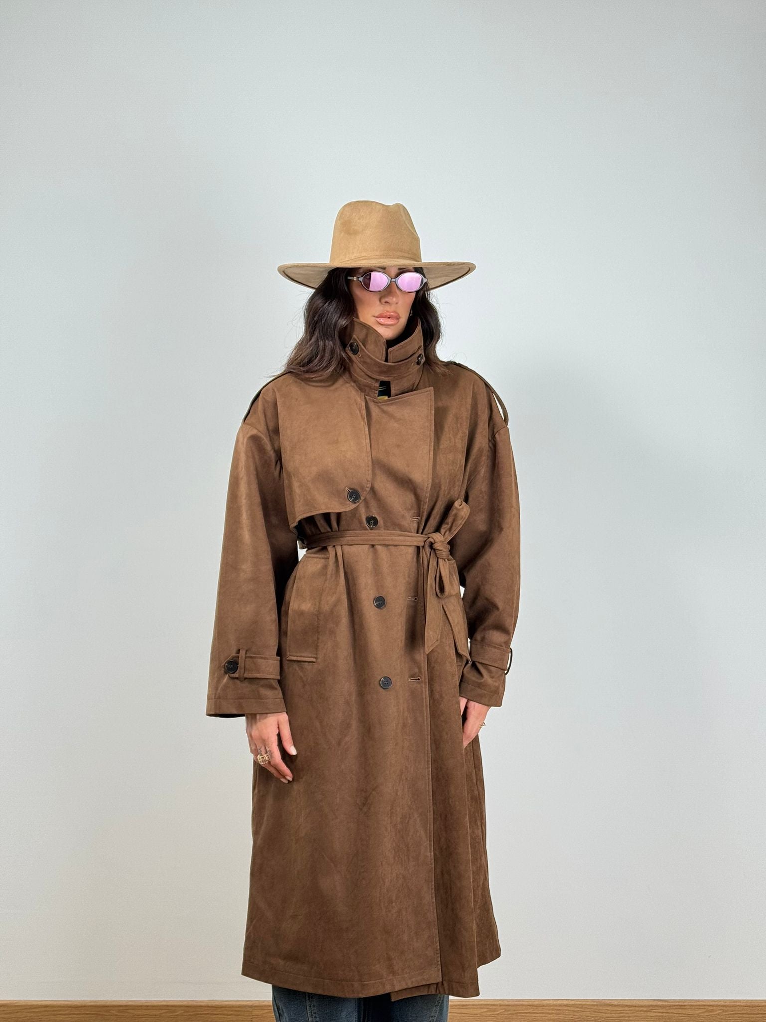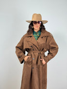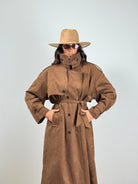 Trench lungo marrone scamosciato top quality taglia unica con fusciacca oversize